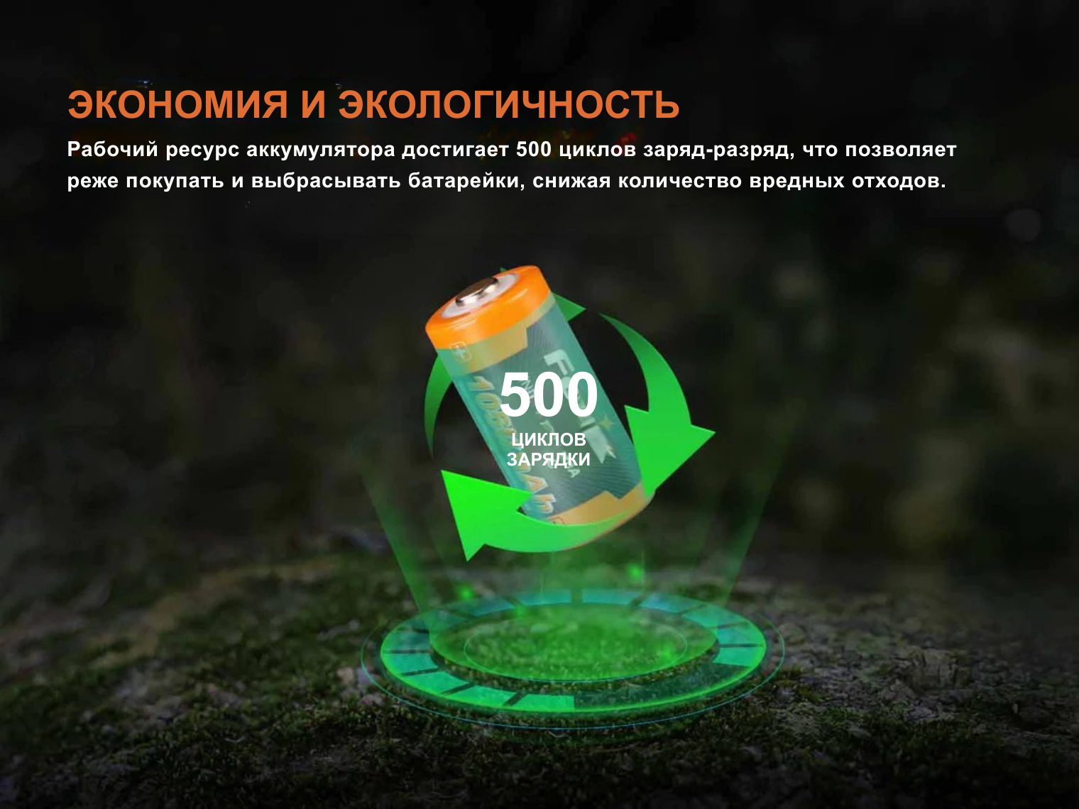 Помимо зарядки через USB-порт, аккумулятор можно заряжать в фирменных станциях Fenix серии ARE (модели D1, D2, A2, A4) или в универсальных зарядных устройствах для Li-ion батарей.