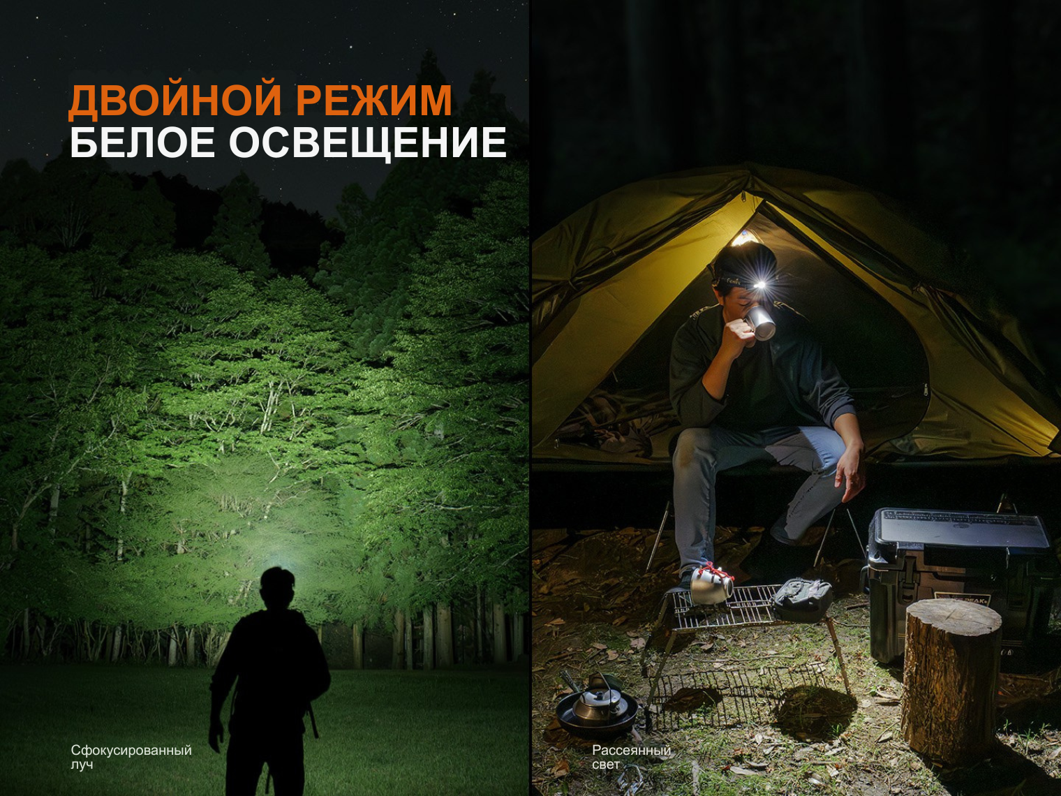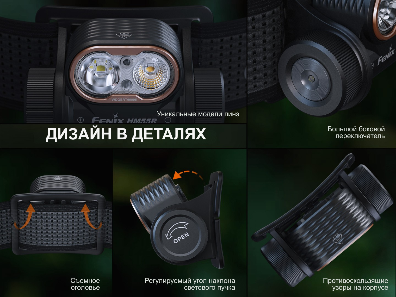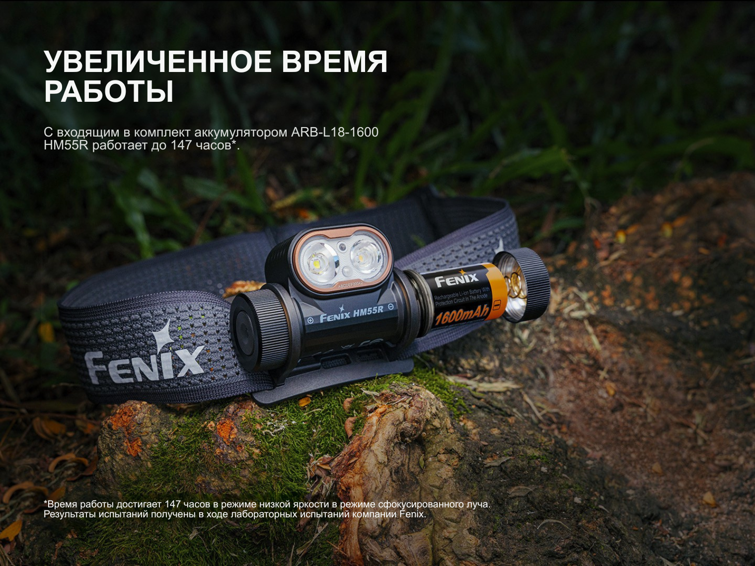 Налобный фонарь Fenix HM55R — это универсальная модель для кемпинга, работ на стройплощадке, вечерних пробежек и других активностей на открытом воздухе.