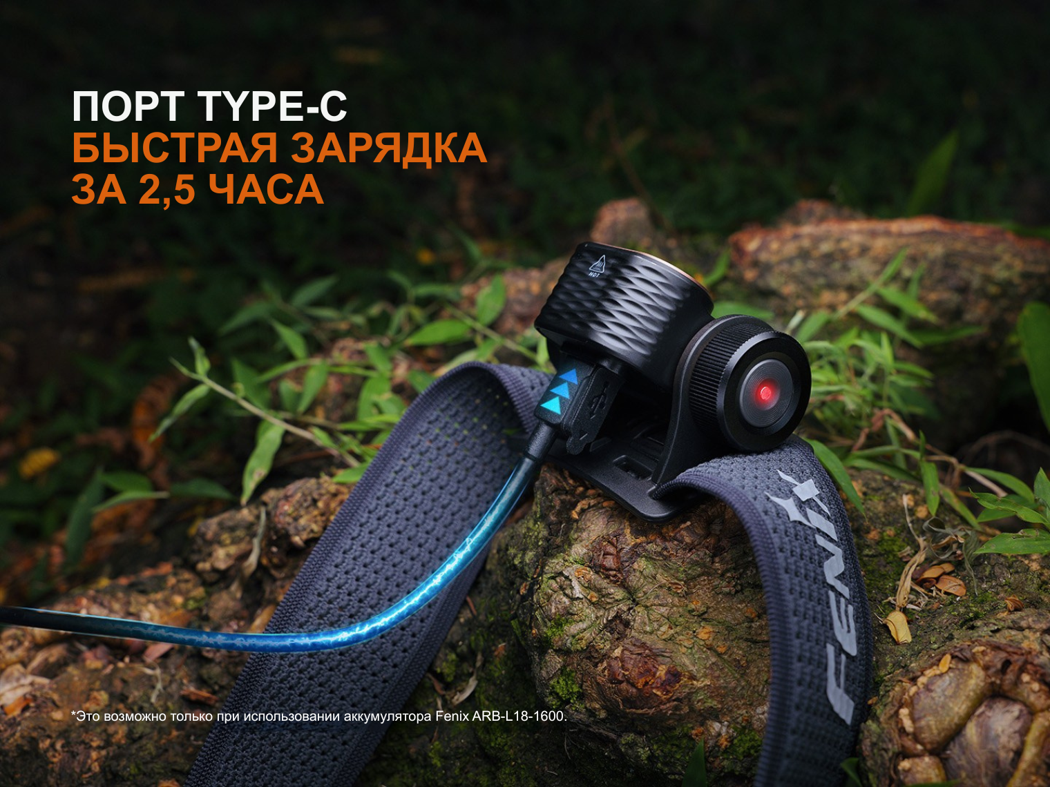 Комплектация | Fenix HM55R с резинкой на голову, аккумулятор ARB-L18-1600, кабель USB-C для зарядки, запасное уплотнительное кольцо, инструкция |