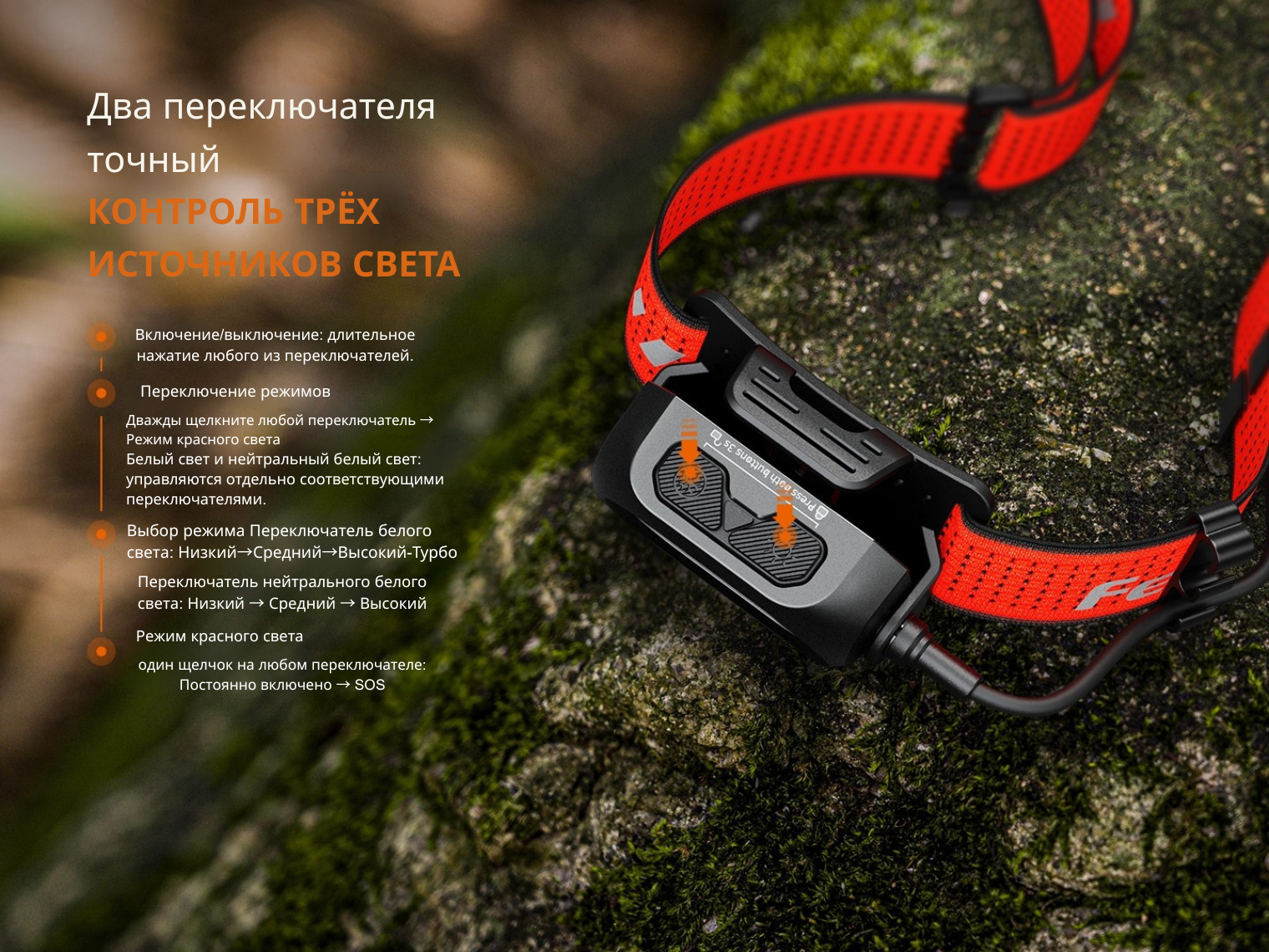 Налобный фонарь Fenix HP12R-T сочетает свет высокой яркости до 1300 люменов, точную настройку светового потока и продуманную конструкцию для комфортного использования в движении. Это профессиональная модель, разработанная для бегунов, трейлраннеров, туристов, строителей и специалистов, работающих в условиях плохой видимости.
