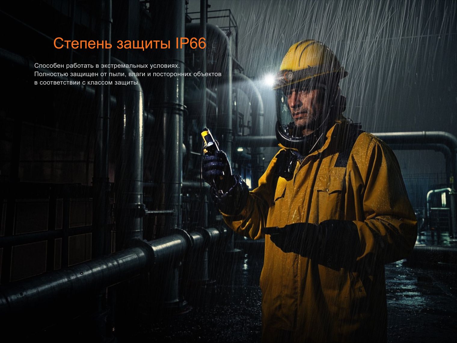 Корпус выполнен из алюминиевого сплава A6061-T6 с твердым анодированием, что повышает стойкость к коррозии и механическим повреждениям при падении с высоты 2 м. Класс защиты от воды и пыли IP66 предусматривает эксплуатацию в сложных условиях, включая повышенную влажность.