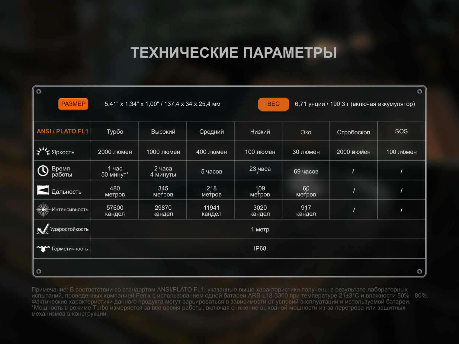Обратите внимание! В режиме Турбо время работы указано суммарно, учитывая снижение яркости при срабатывании системы защиты от перегрева.
