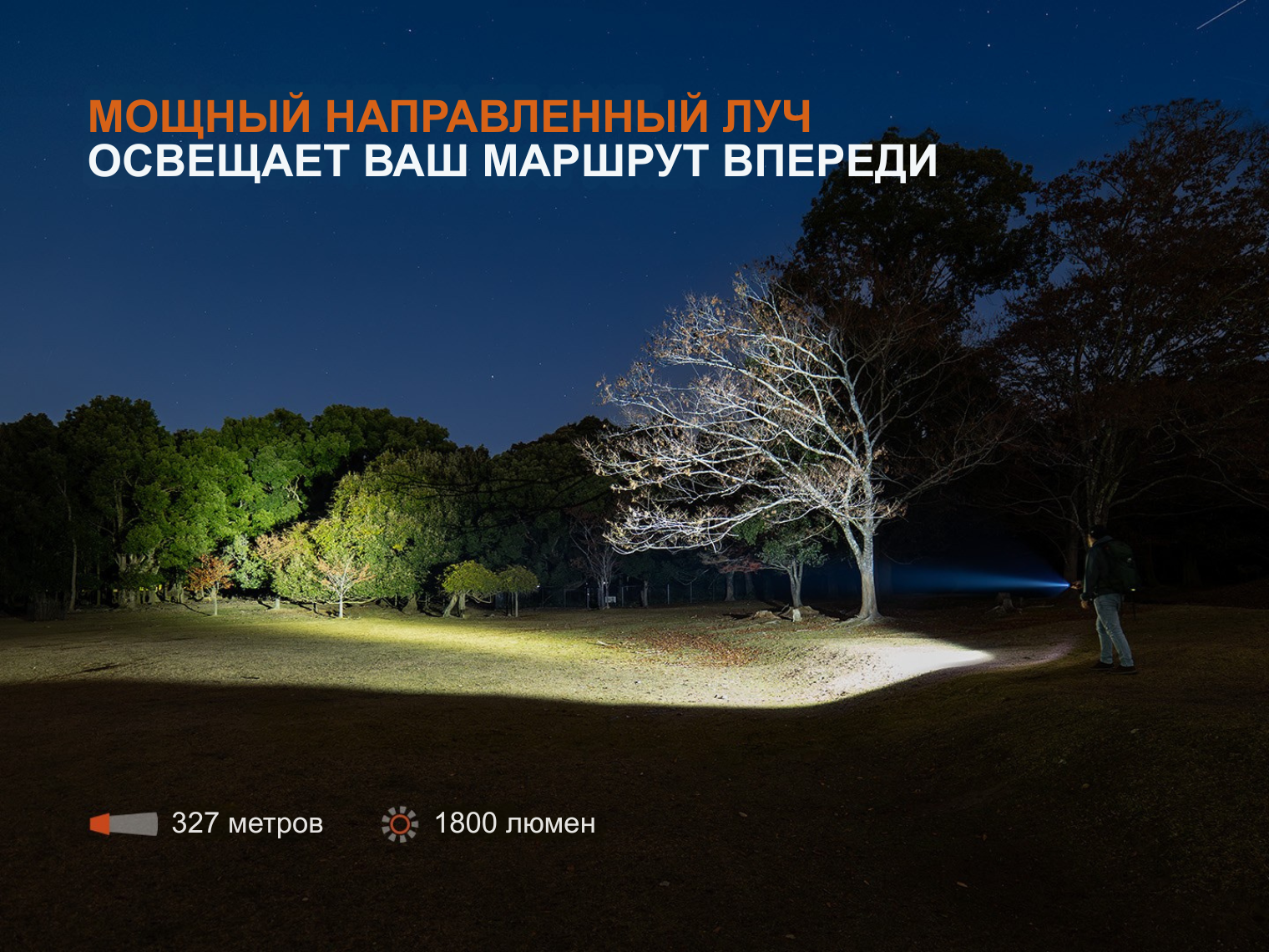 В модели установлен светодиод Luminus SST40 с ресурсом работы 50 000 часов. По сравнению с первой версией яркость выросла на 50%, достигнув отметки 1800 лм. Оптическая система формирует сбалансированный луч, сочетающий дальнобойность до 327 м и комфортное периферийное освещение.