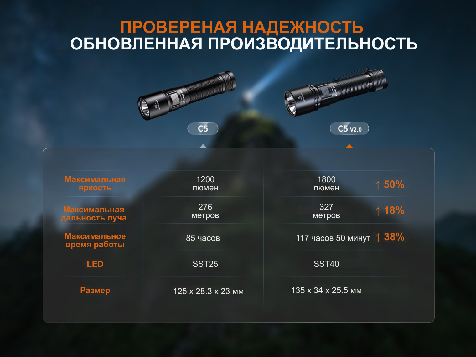 Fenix C5 V2.0 — это второе поколение популярной модели, получившее значительное повышение производительности при сохранении оптимальных габаритов. Фонарь разработан как надежный источник света для активного отдыха, патрулирования и решения бытовых задач, где требуются высокая яркость и выносливость.