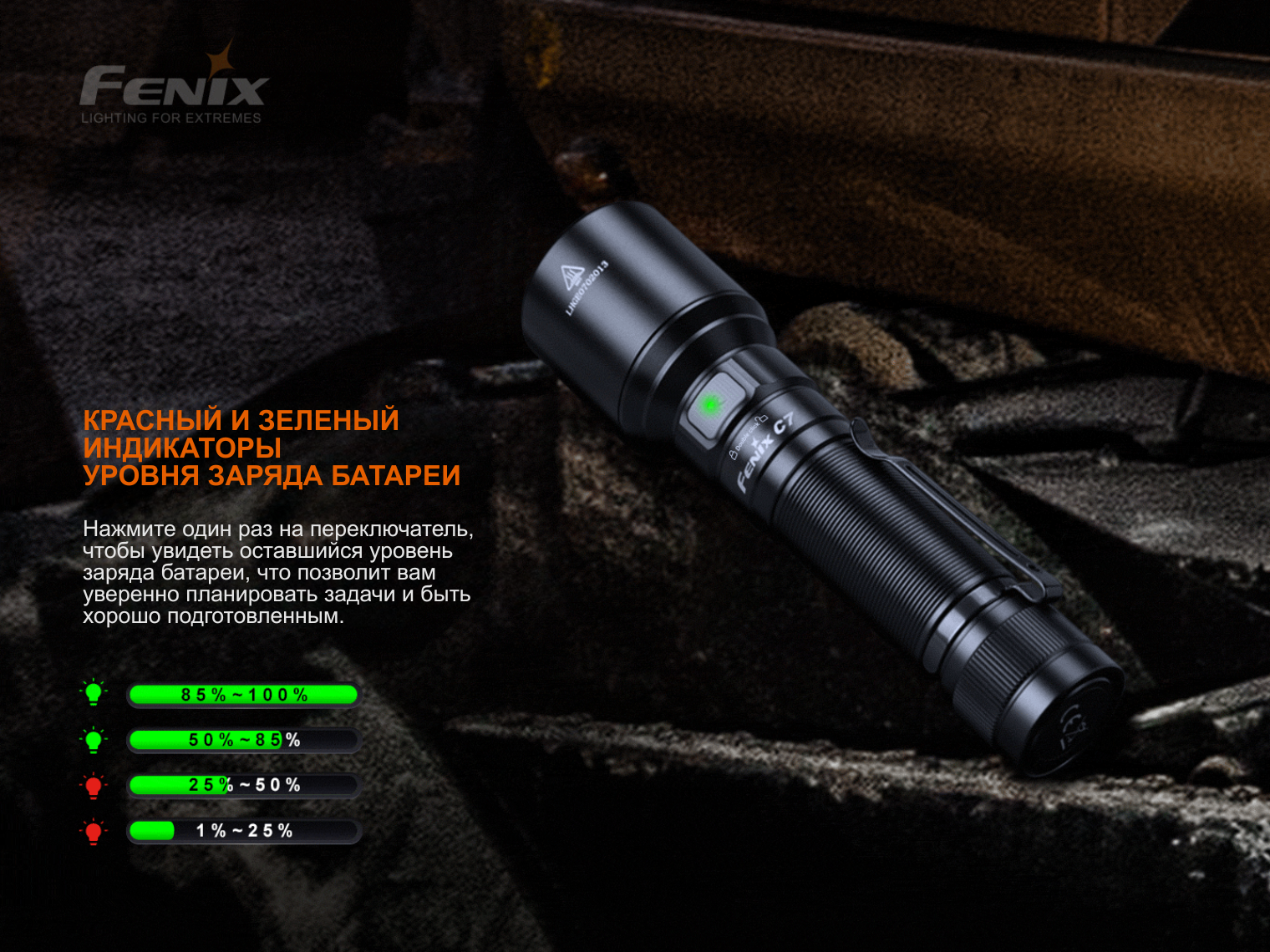 Комплектация | Fenix C7, аккумулятор ARB-L21-5000 (21700), зарядный кабель USB Type-C, темляк, запасное уплотнительное кольцо, руководство пользователя |