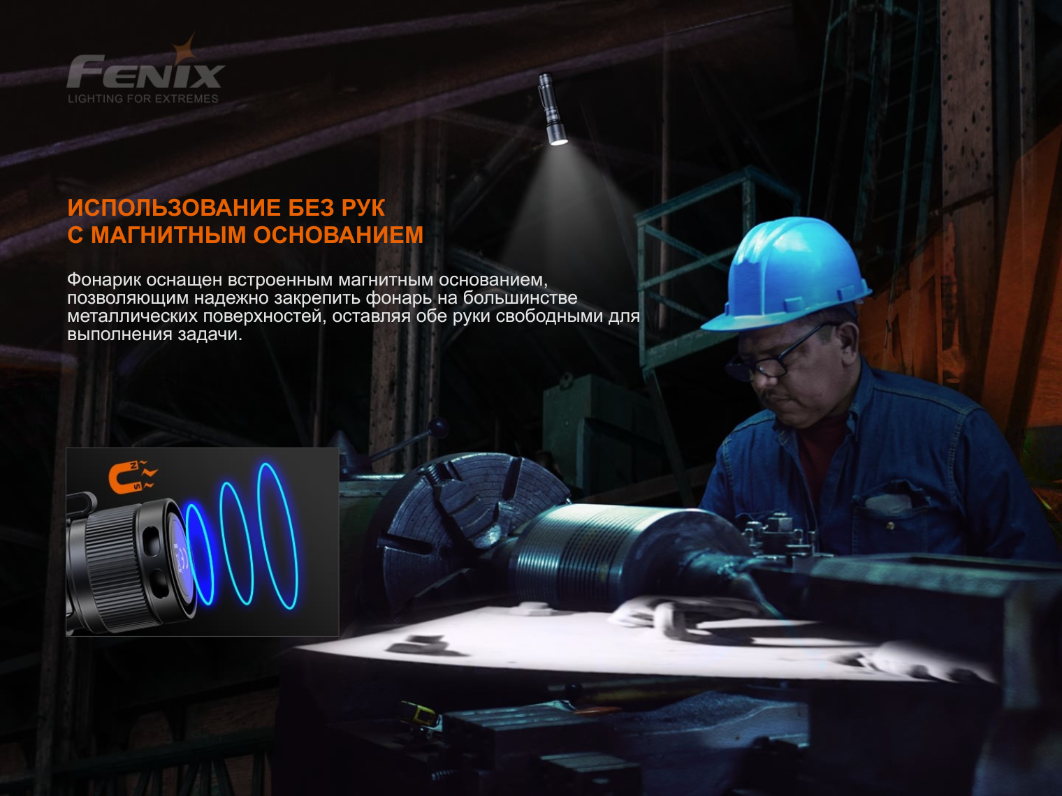 Модель комплектуется съемной клипсой и дополнена магнитом, встроенным в хвост для примагничивания к металлу и освобождения рук для выполнения ремонта и других задач. Функционал предусматривает автоматическое запоминание последнего режима и возможность заблокировать устройство на время, чтобы исключить случайное включение во время хранения.