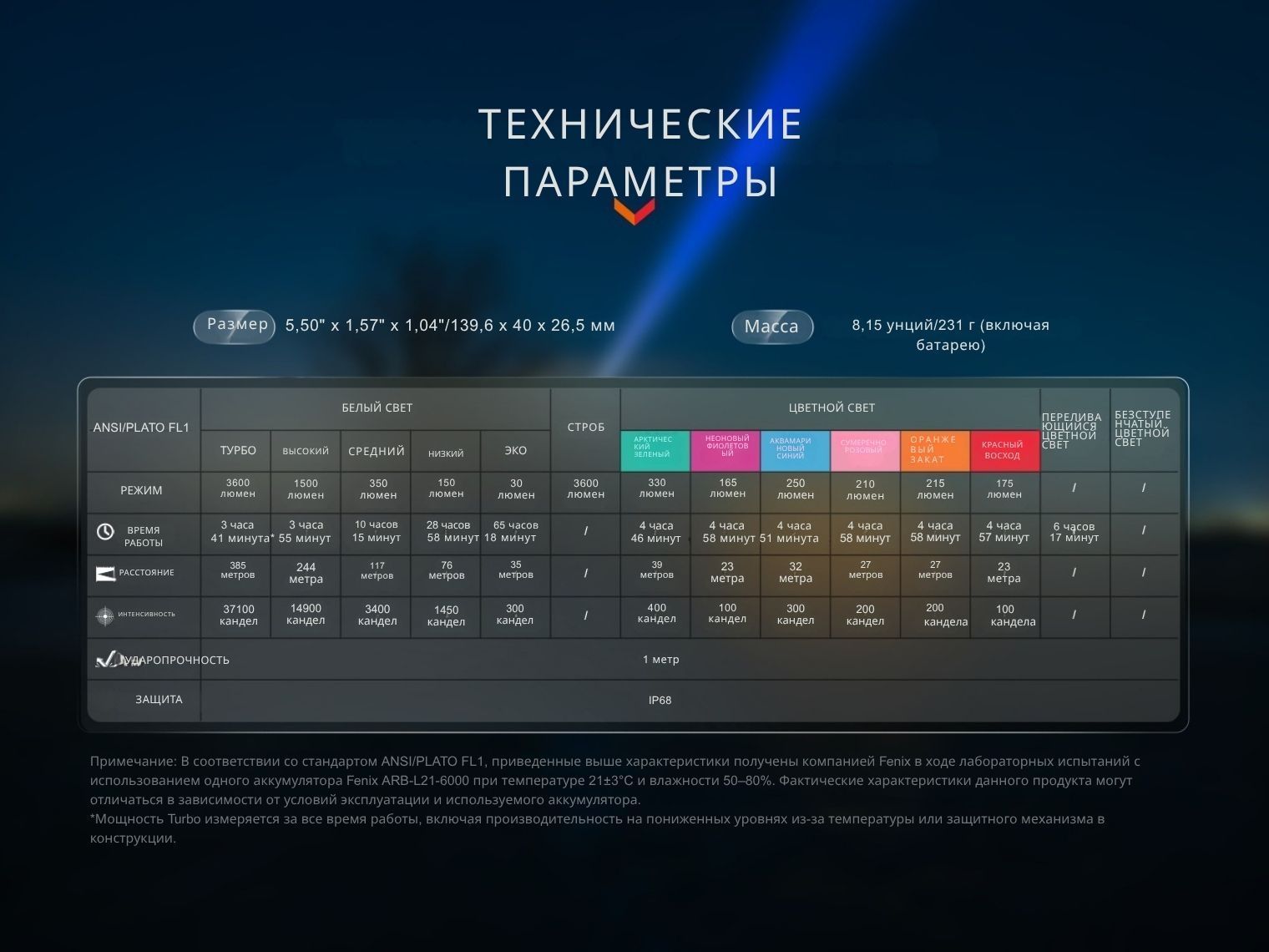Обратите внимание! Время работы в режиме Турбо указано с учетом времени работы в менее ярких режимах. Переключение на них происходит автоматически, когда активируется защита от перегрева.