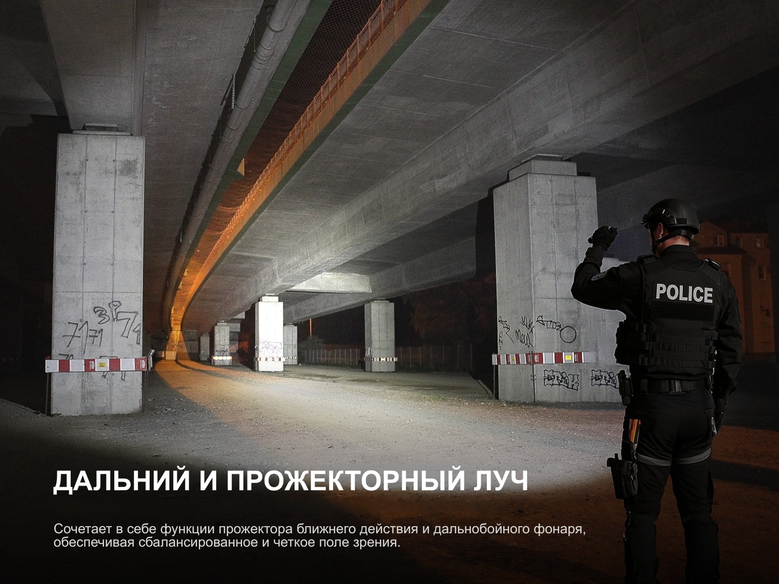 В фонаре использован основной светодиод Luminus Cree XHP50.3 с ресурсом 50 000 часов и цветовой температурой около 5700K. Мощный луч на 3600 люмен освещает до 350 м дистанции, создавая широкий световой поток для контроля больших территорий.