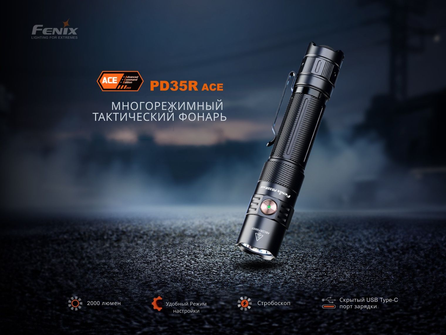 Fenix PD35R ACE — тактический фонарь нового поколения. Он является частью специальной серии Advanced Command Edition, разработанной для полицейских, военных, спасателей и профессиональных туристов.