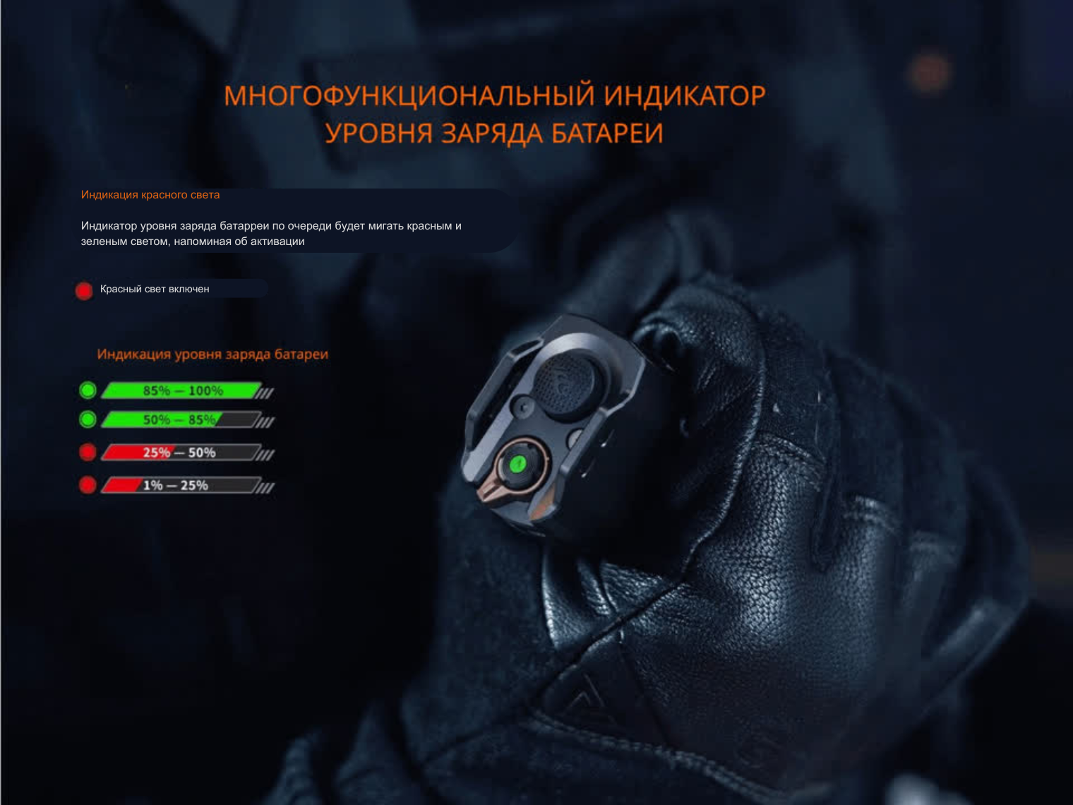 В TK35R доступны 9 режимов, разделенных на несколько независимых групп: с белым и красным светом.