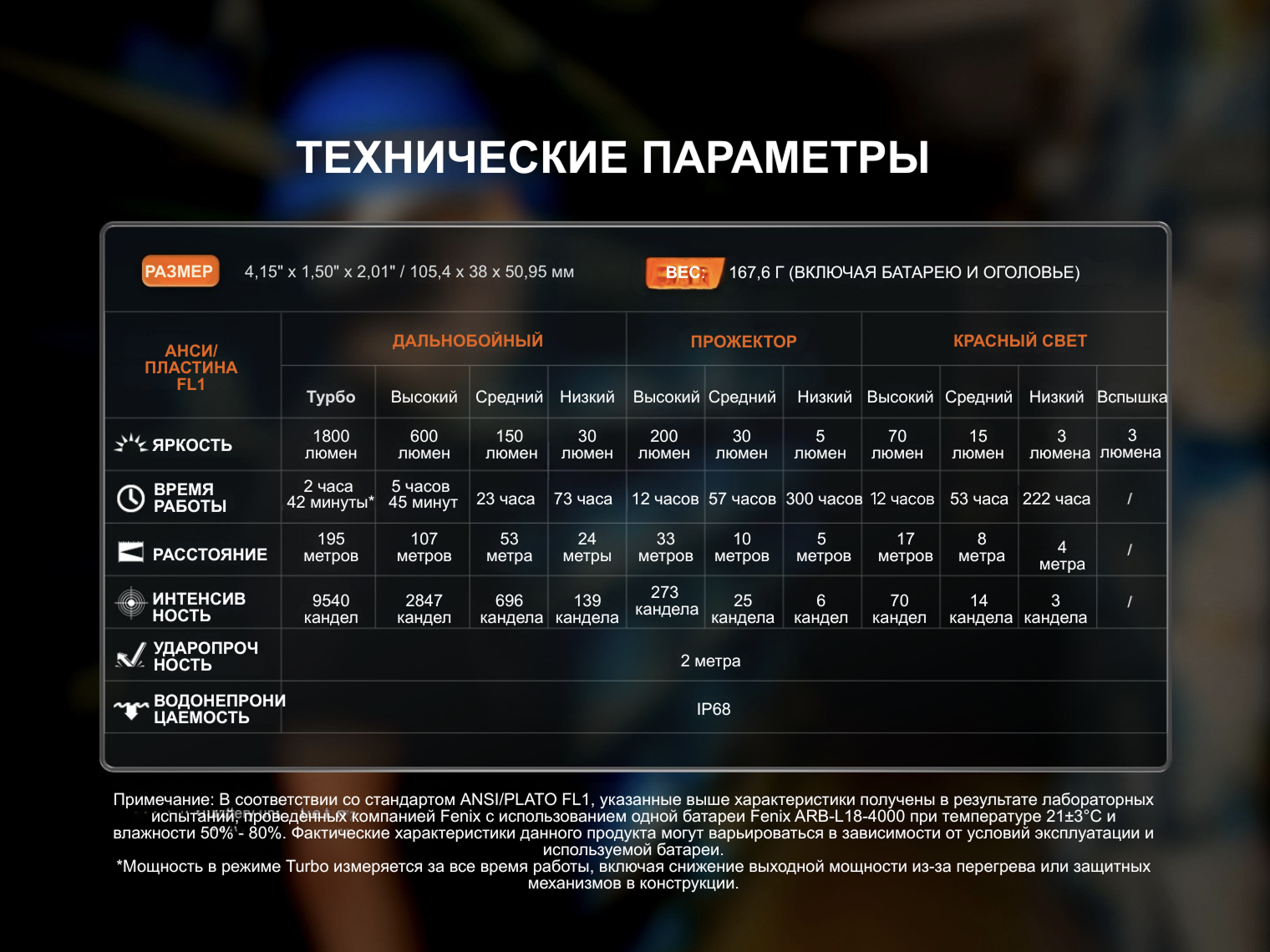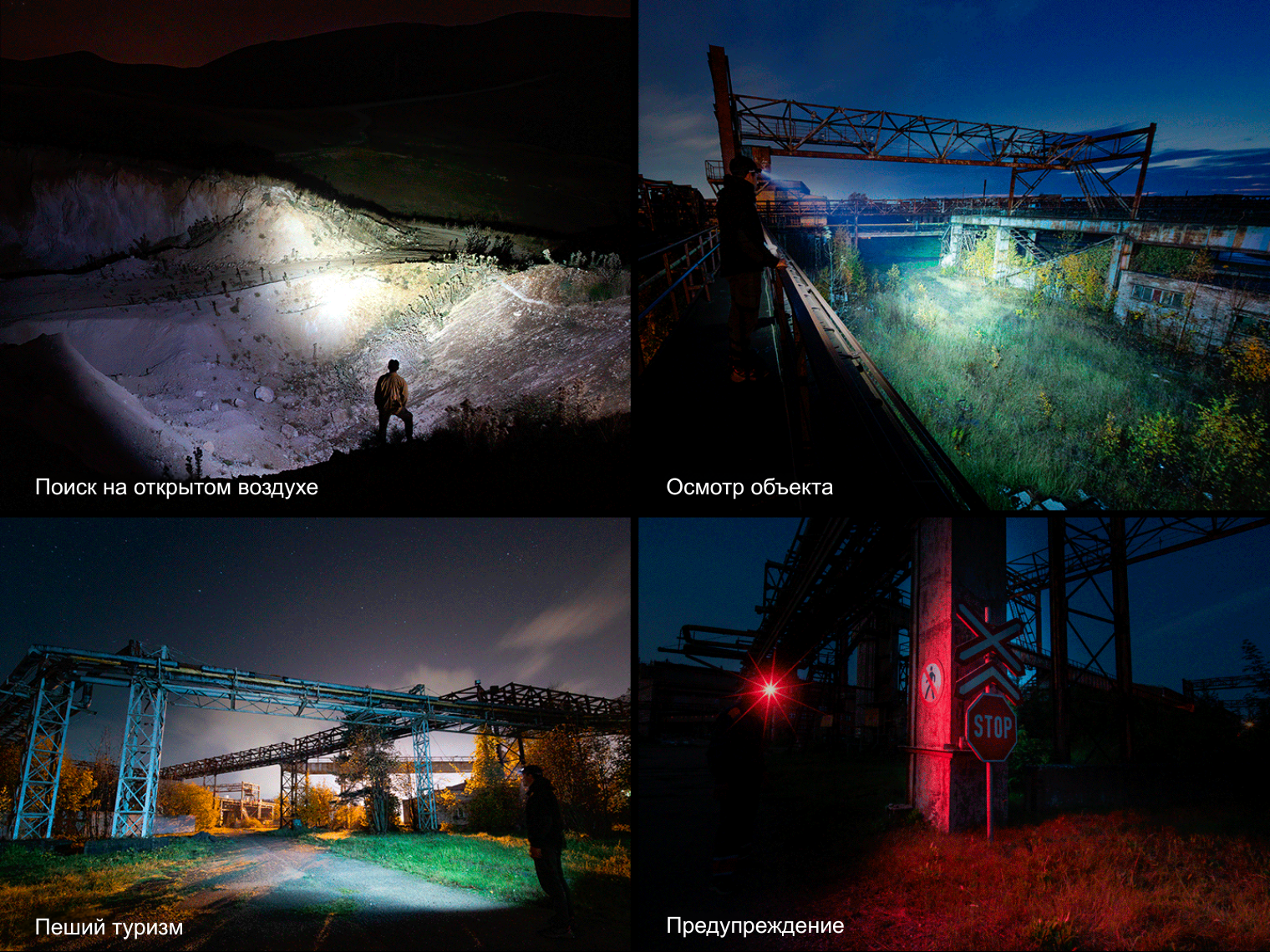 Обратите внимание! Время работы в режиме Турбо измерено с учетом уровней с меньшей яркостью. Фонарь переходит на них при сильном нагреве или если сработал сенсор приближения к объекту.
