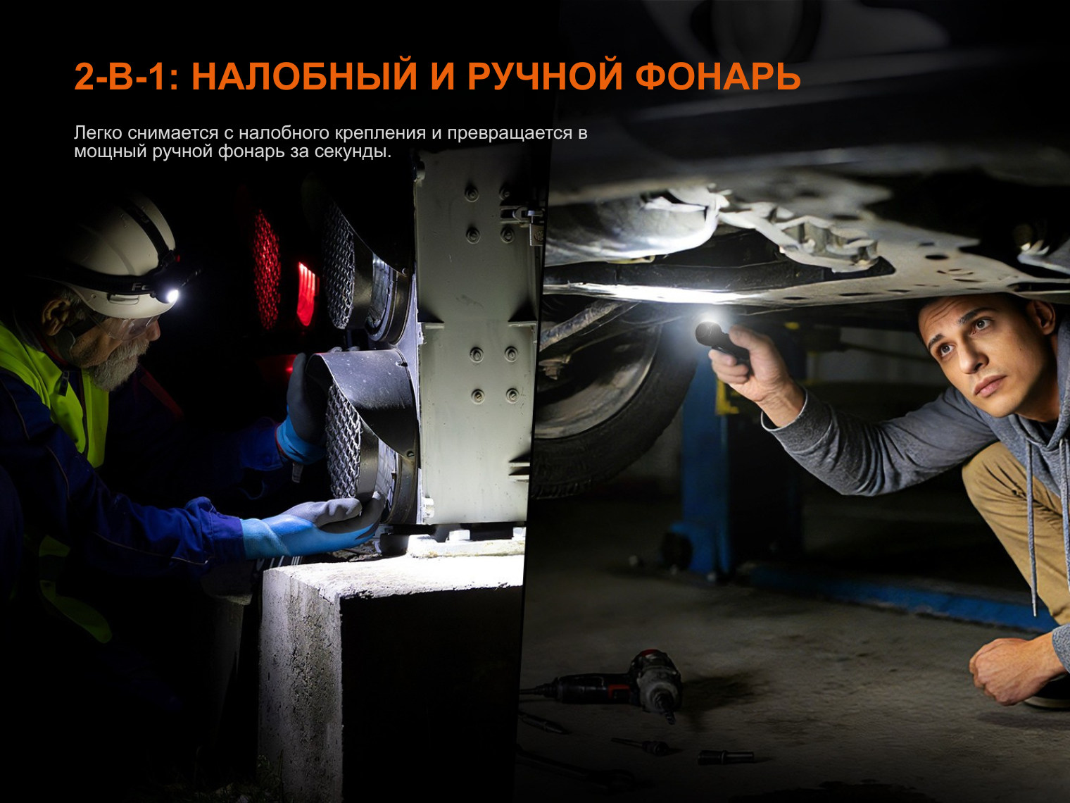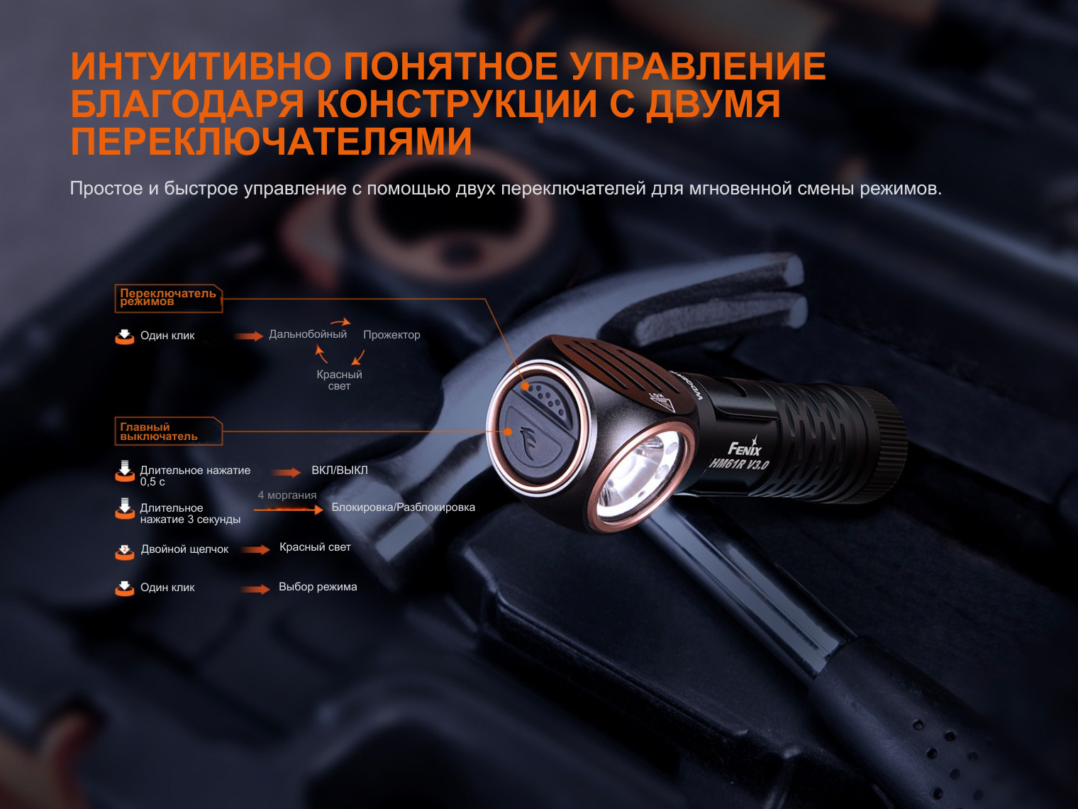 Fenix HM61R V3.0 — это универсальное осветительное устройство, которое благодаря съемному креплению и стальной клипсе трансформируется из налобного фонаря в ручной или нагрудный.