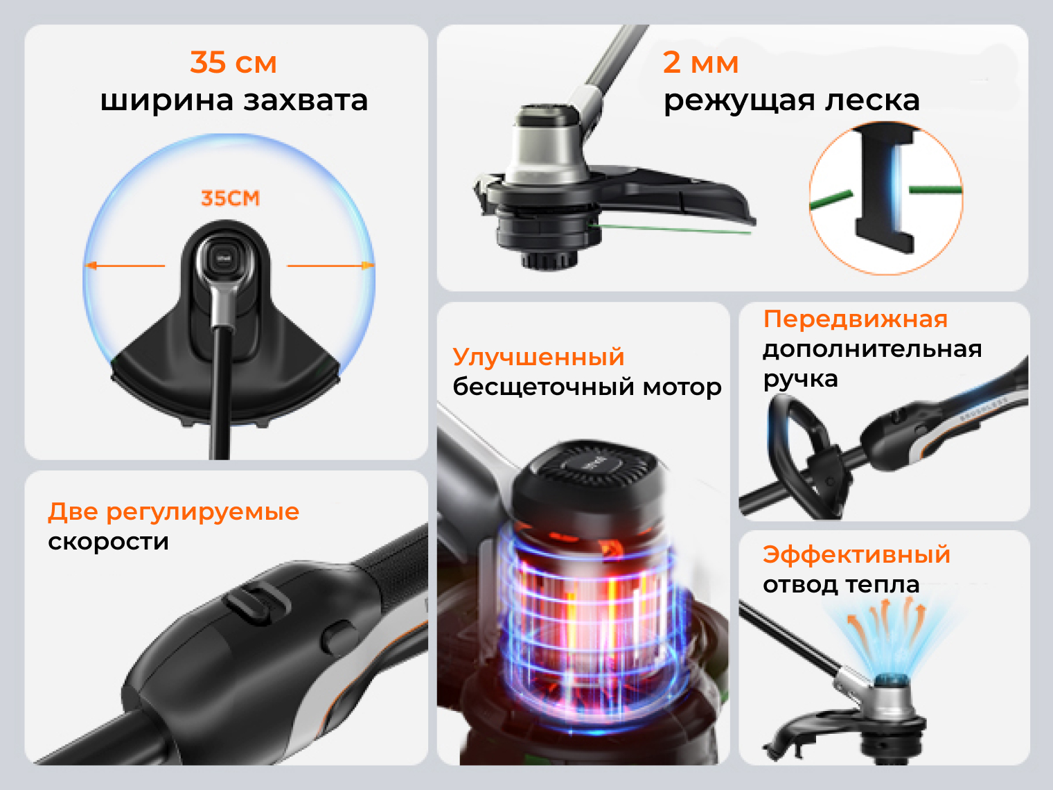 Модель создана для легкого ухода за приусадебным участком, где важна маневренность. Отсутствие бензина и кабелей обеспечивает свободу движений в самых отдаленных уголках сада. Бесщеточный двигатель выдает высокий крутный момент, работает тихо и не требует сложного технического обслуживания в течение многих лет.