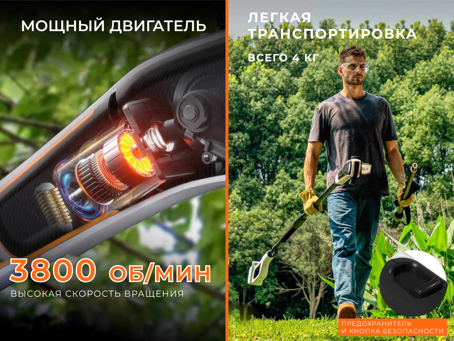 Благодаря питанию от универсального павербанка Litheli U20 вы получаете абсолютную мобильность, инструмент готов к работе даже в самых отдаленных уголках сада. Это избавляет от необходимости разматывать десятки метров удлинителей, искать розетки или готовить топливную смесь для бензинового двигателя.
