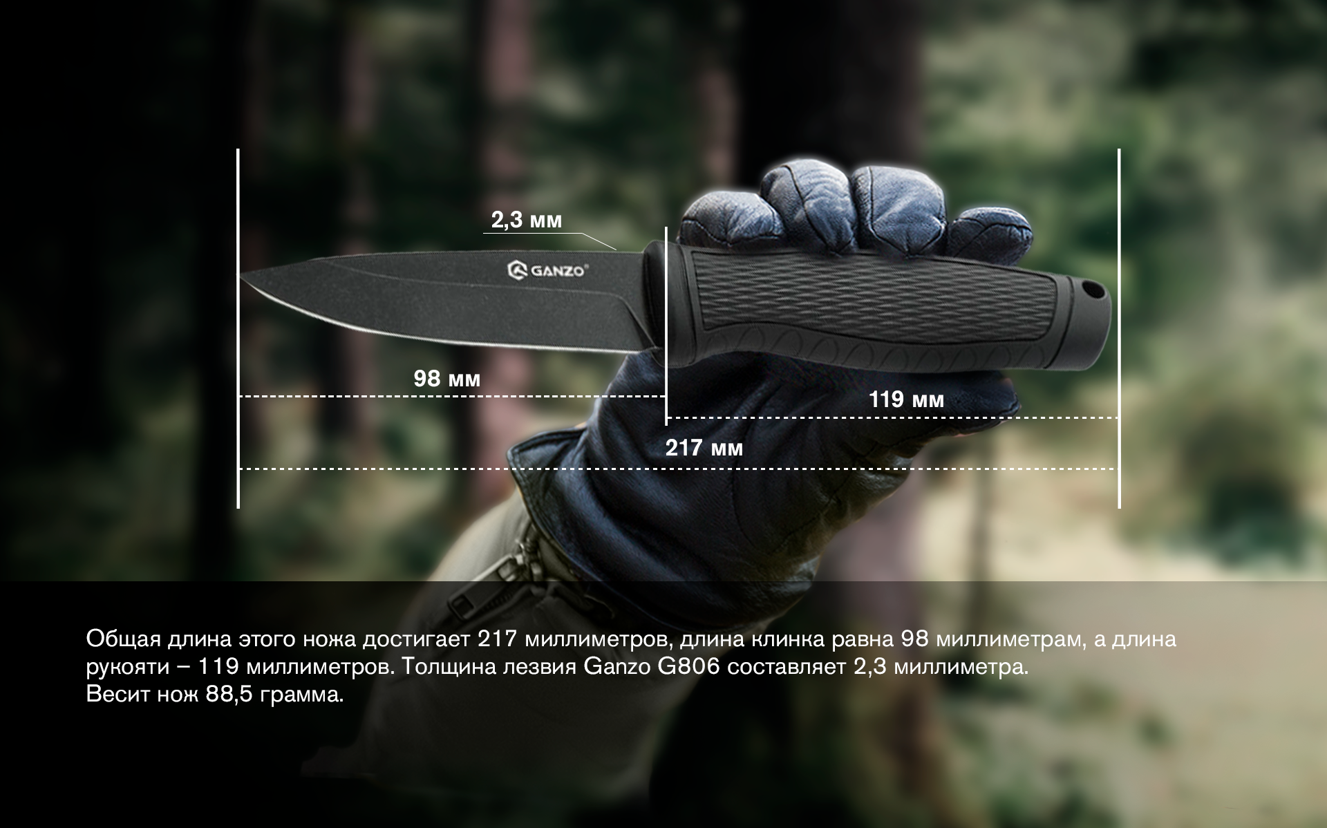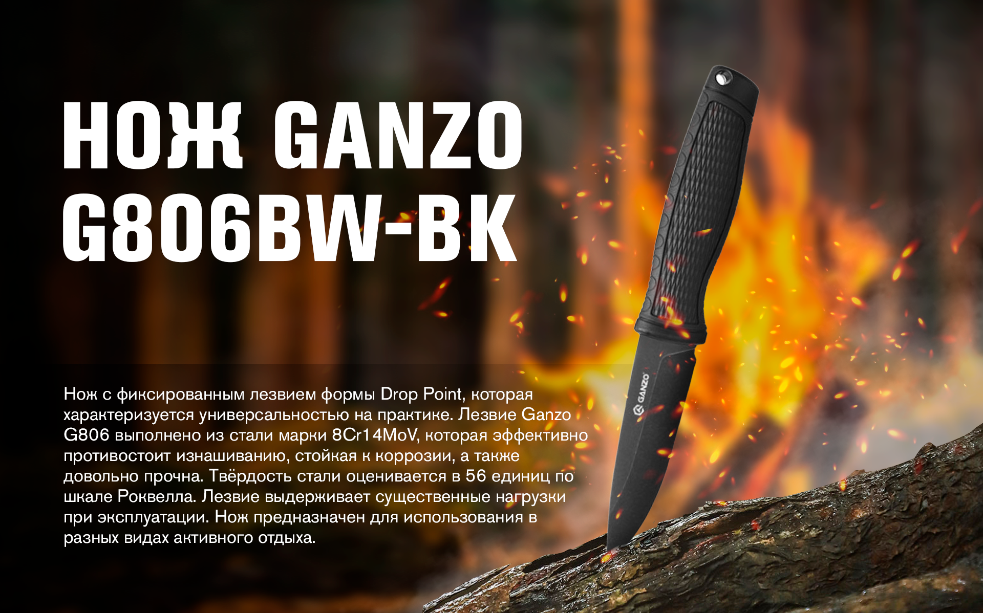 Нож Ganzo G806BW — универсальный инструмент для туризма, аутдора и бытовых работ. Фиксированная конструкция выдерживает высокие нагрузки, поэтому в критический момент справится даже с тактическими задачами, где требуется особо выносливое лезвие.