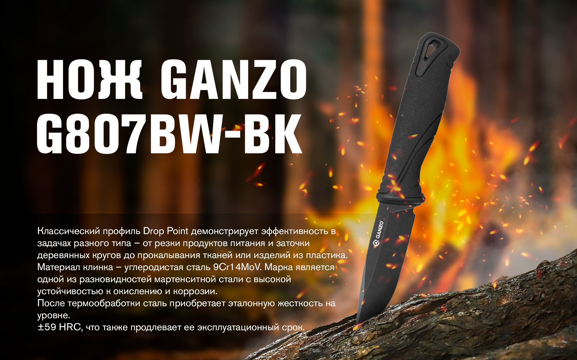 Фиксированный нож Ganzo G807BW рассчитан на работу в широком диапазоне нагрузок: от привычных туристических задач до выживания в полевых условиях, а при необходимости — и для тактического применения.