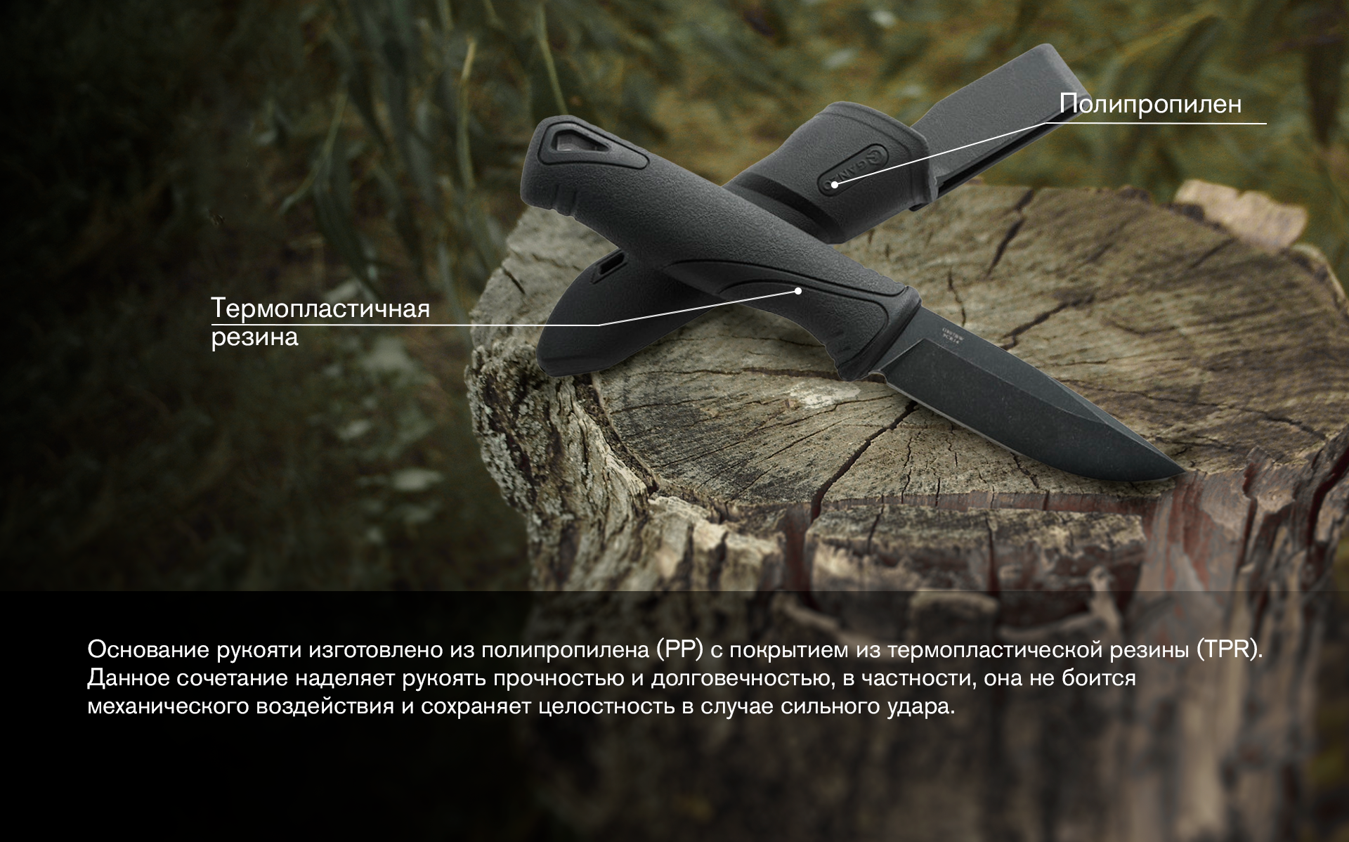 Универсальный профиль Drop Point с прямой заточкой обеспечивает стабильный и контролируемый рез, а тонкое фальшлезвие на обухе улучшает проникающие характеристики при уколе.