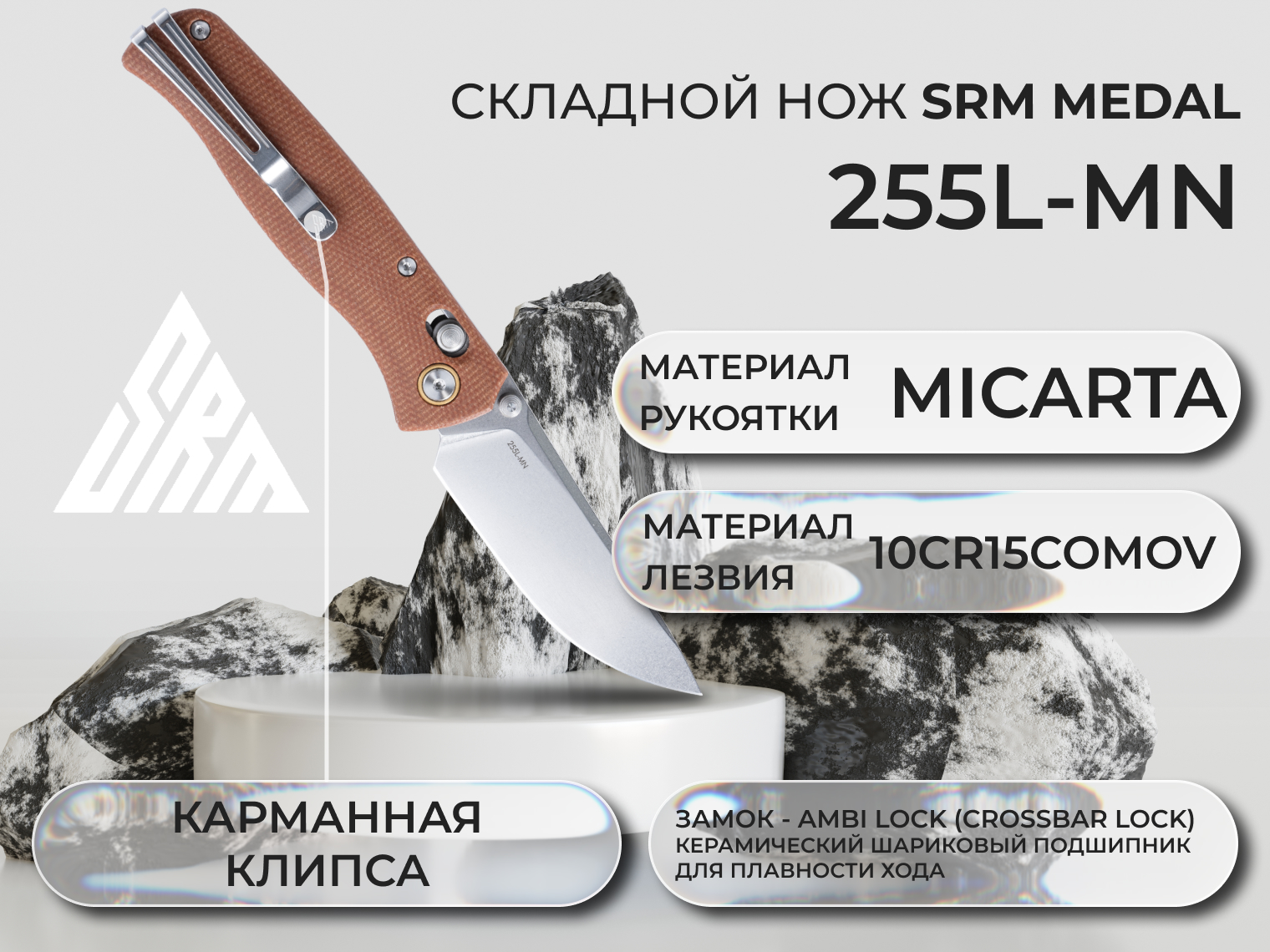 Карманный нож Medal 255L-MN от SRM имеет аккуратный дизайн без лишних деталей. Строгие линии, тонкий силуэт и скромный вес 70 г позволяют носить модель ежедневно, не перегружая карман.