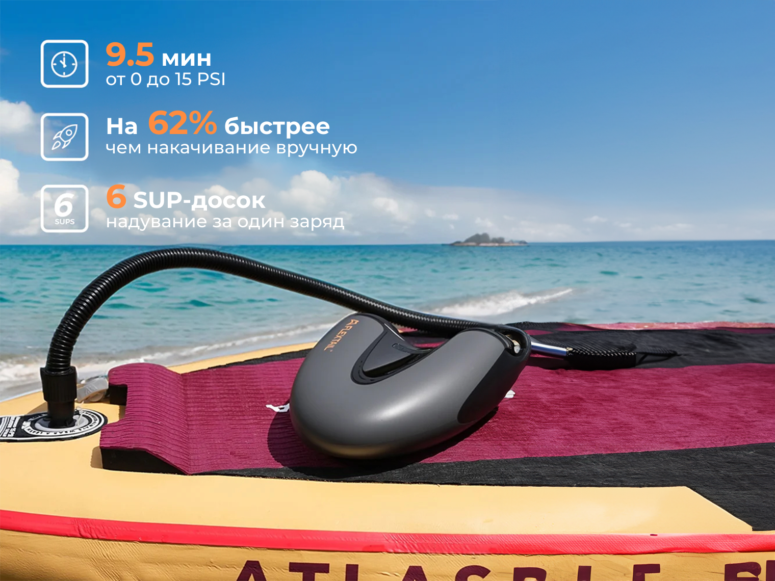 Насос совместим с большинством брендов надувных лодок и досок, включая Red Paddle, iRocker, ISLE, Bluefin, Gladiator, Shark, Hydro-Force, Advanced Elements и другие популярные марки.