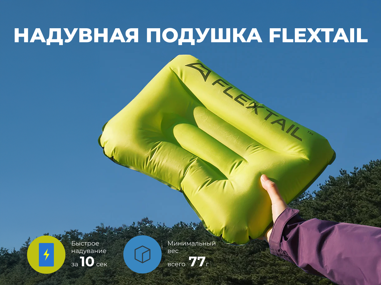 Надувная подушка Flextail Tiny Pillow AVS, компактный мешок для хранения, инструкция.