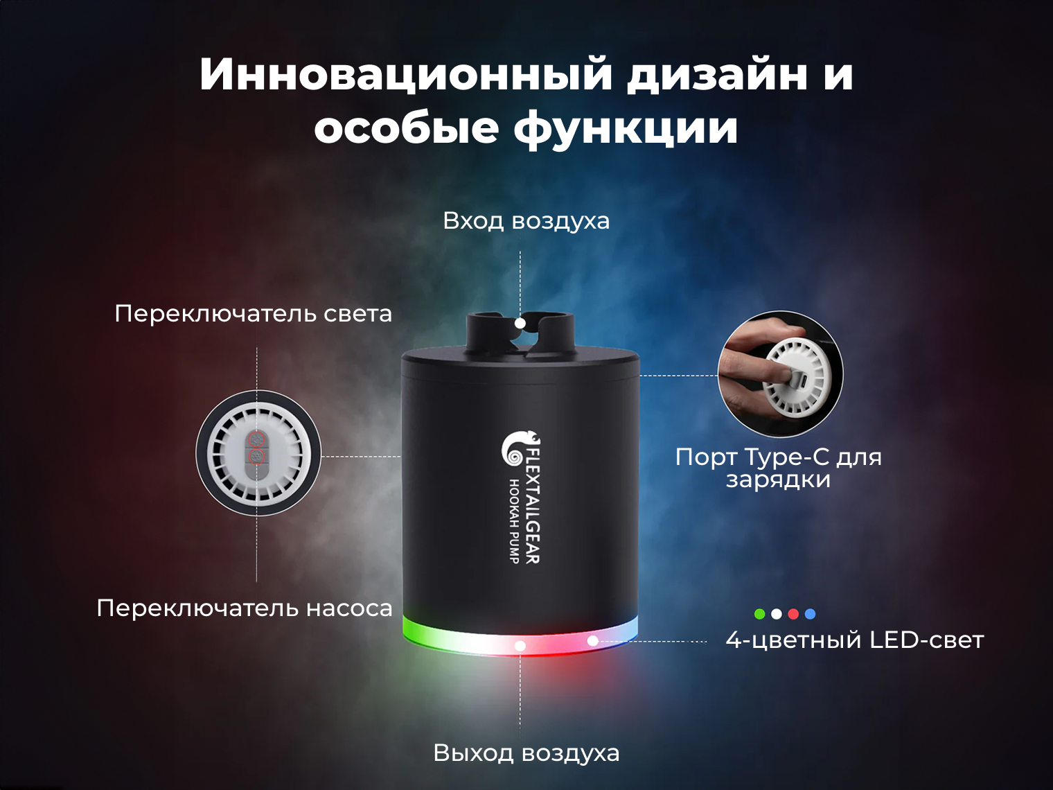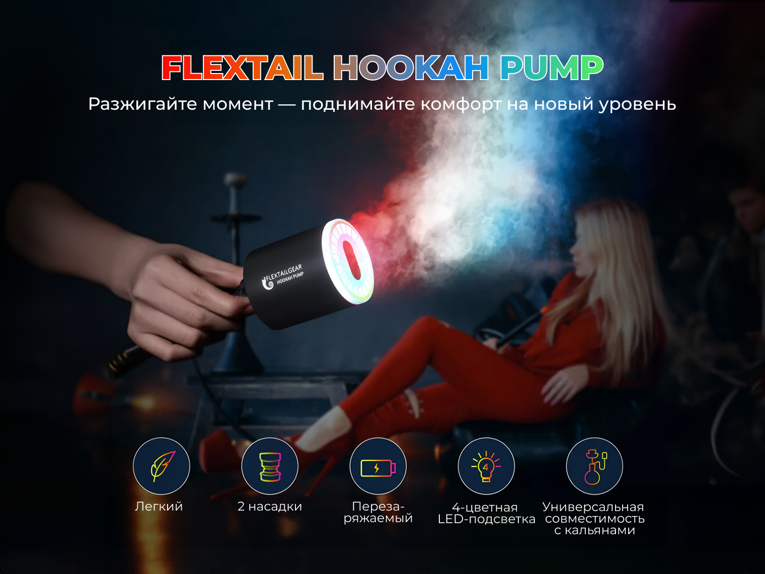 Flextail Hookah Pump — незаменимый гаджет для любителей кальяна, который автоматизирует процесс подготовки к курению. Устройство берет на себя самую трудную часть — прогрев табака и раскуривание углей, что позволяет наслаждаться густым дымом сразу после подключения.