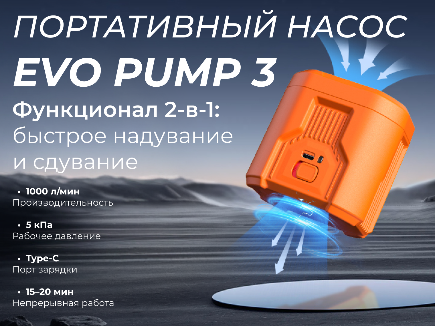 Забудьте о долгом надувании изделий вручную! Компактный насос Flextail Evo Pump 3 подходит для использования на активном отдыхе, в кемпинге или на пляже, где требуется быстрая накачка используемых изделий. С помощью этого устройства вы можете надувать туристические матрасы и коврики, пляжные мячи, круги для плавания, лодки и другие предметы без лишних усилий всего за несколько минут!