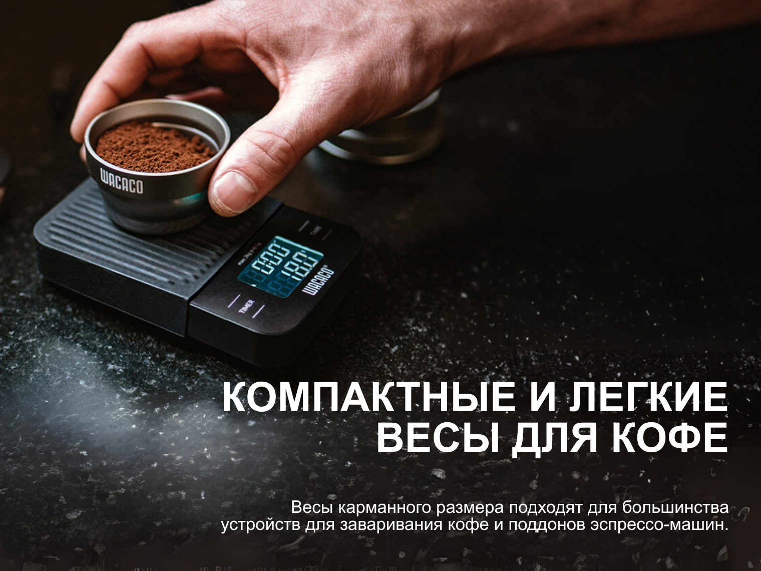 Wacaco Exagram — это электронные весы для кофейных энтузиастов, стремящихся к максимальной точности во время приготовления напитков. Весы помогают не только отмерить количество кофе или воды, но и строго следовать рецепту с помощью встроенного таймера.