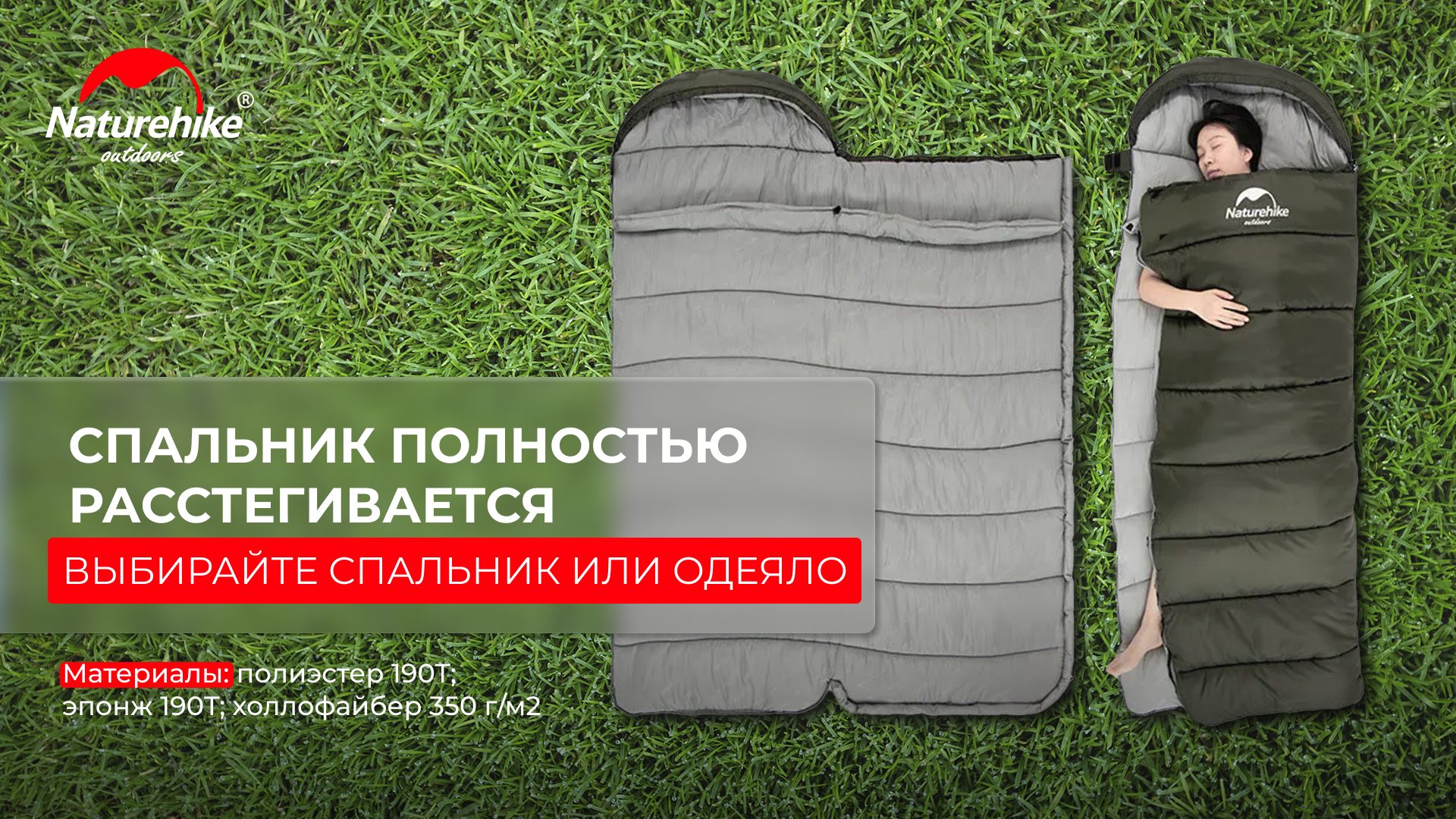 Спальный мешок с худи Hollow Cotton от Naturehike с моделью-конвертом, чтобы его можно было широко раскрыть в одеяло. Этот вид также можно комбинировать в двухместную модель. Цвета модели: коричневый, зеленый. Спальник обеспечивает пользователю комфорт, уют и тепло в полевых условиях.