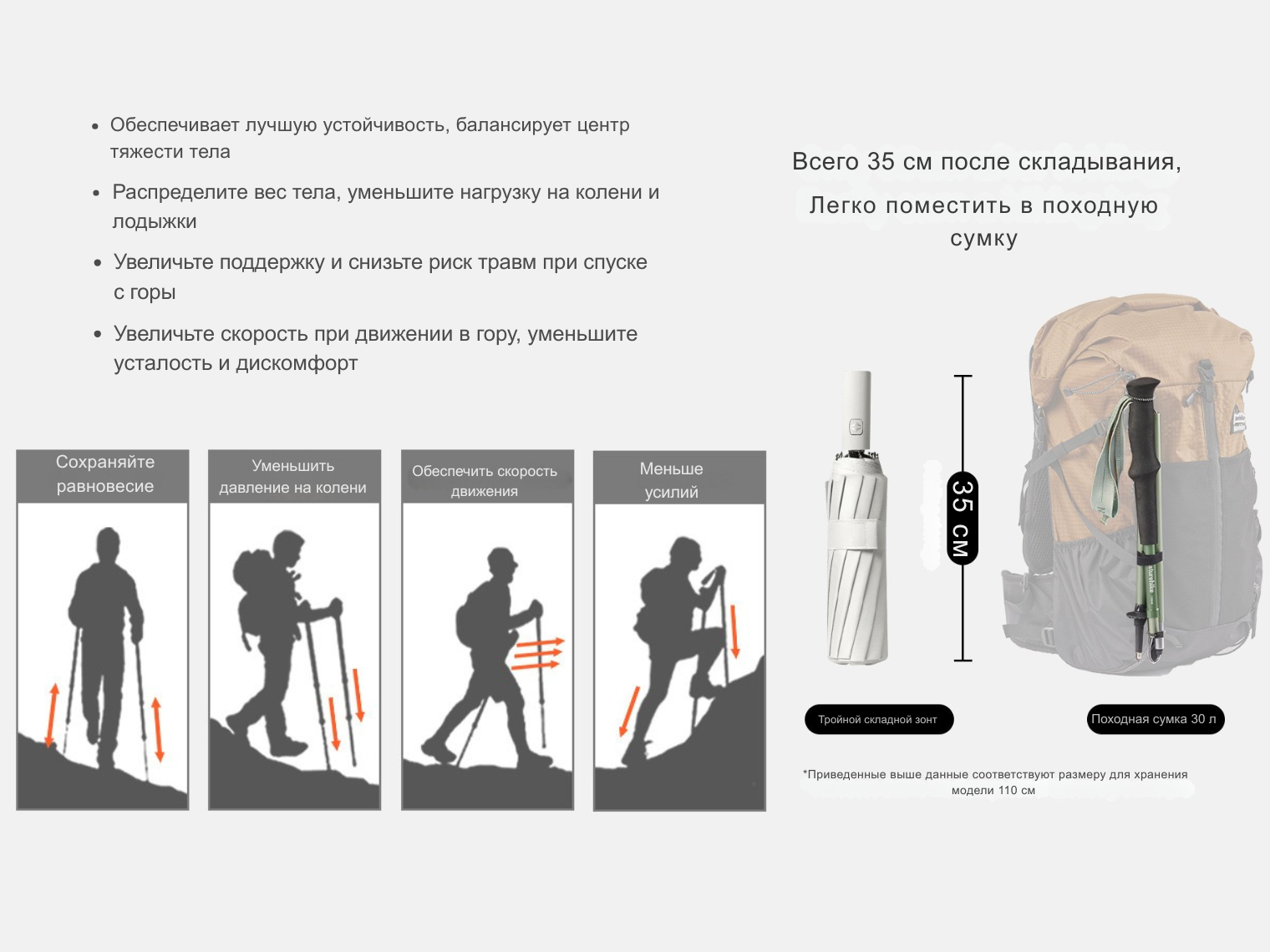 Треккинговая палка Naturehike CNK2450DS016 помогает сохранять равновесие во время передвижения с грузом на спине, снижает нагрузку на колени и суставы и облегчает преодоление крутых подъемов и спусков. Благодаря использованию палок вы быстрее адаптируетесь к сложным условиям и тратите меньше энергии во время пеших путешествий.