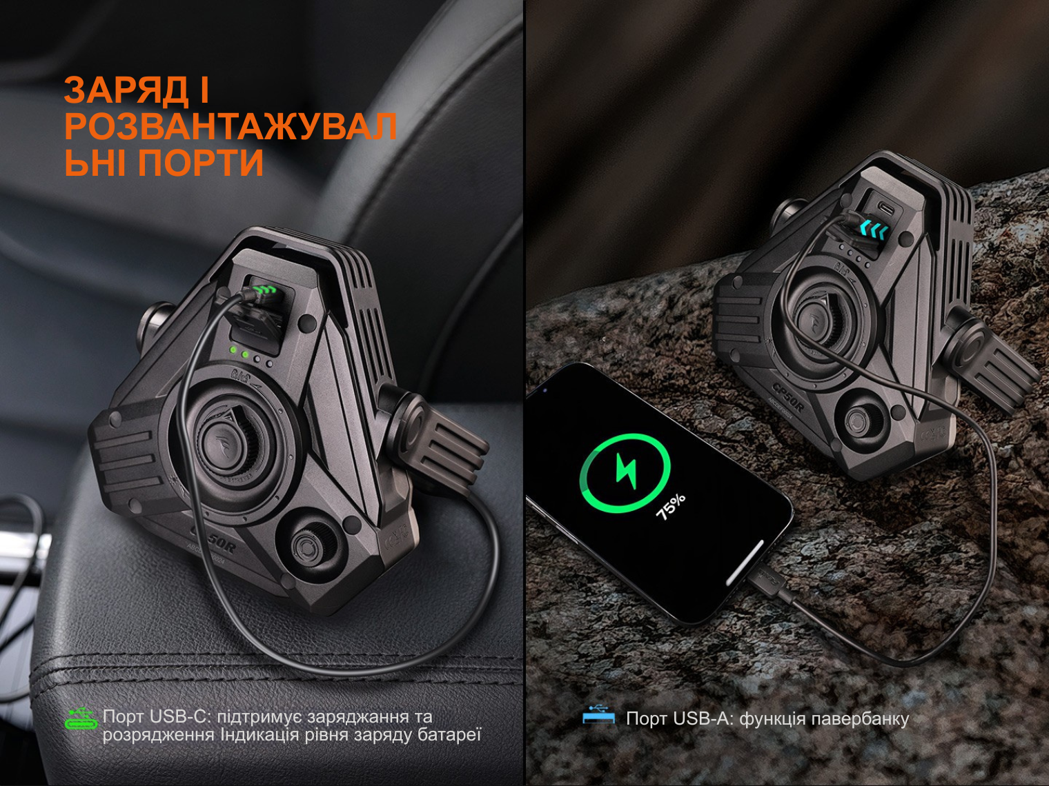 CP50R можна використовувати як Power Bank: обидва порти USB-A та USB-C підходять для заряджання зовнішніх пристроїв.