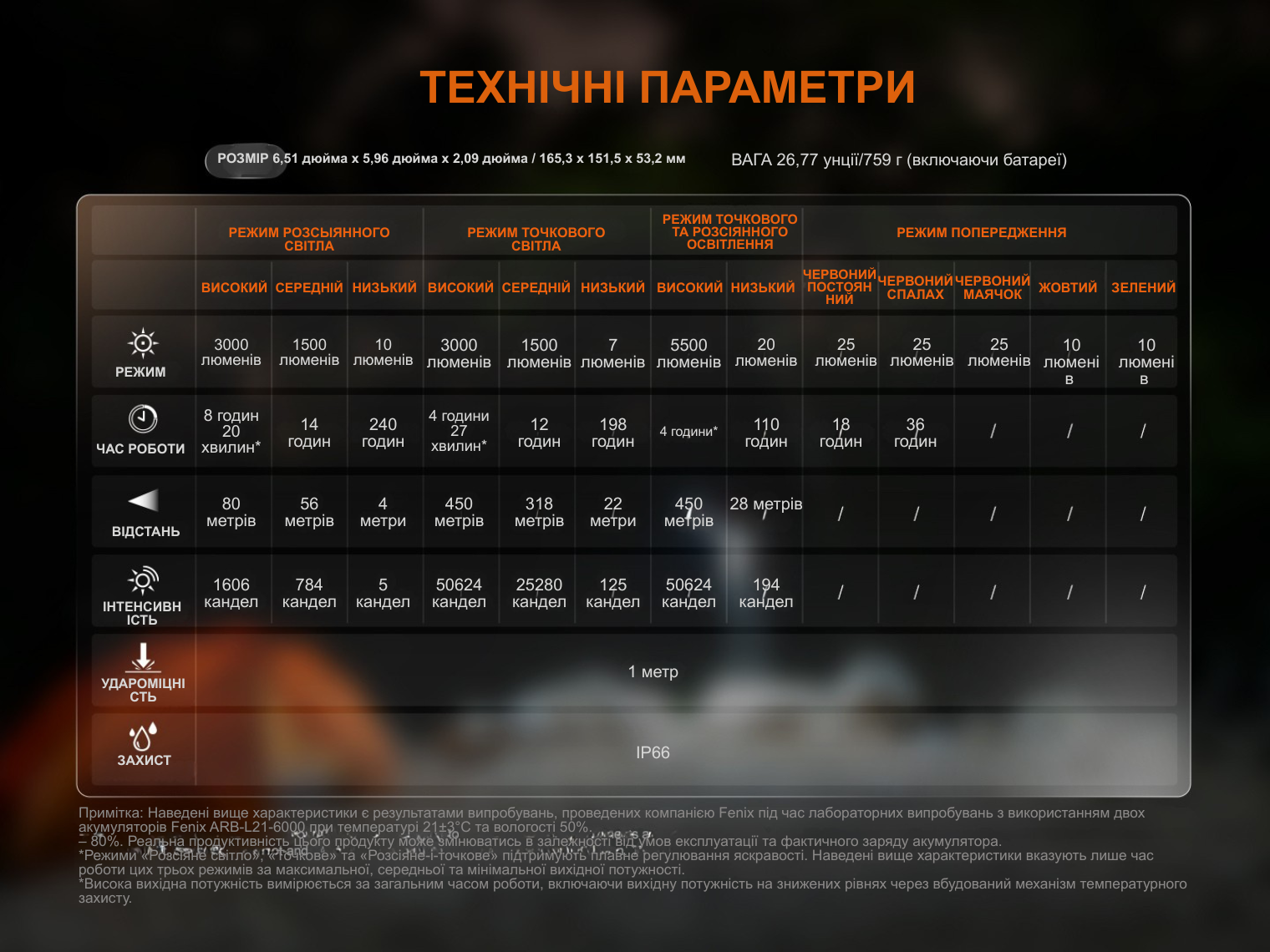 Зверніть увагу! Інтелектуальний захист від перегріву автоматично знижує яскравість світла у режимі Високий, якщо температура електроніки всередині перевищує позначку 54°C. Час роботи у режимі Високий вказано з урахуванням спрацьовування системи захисту.