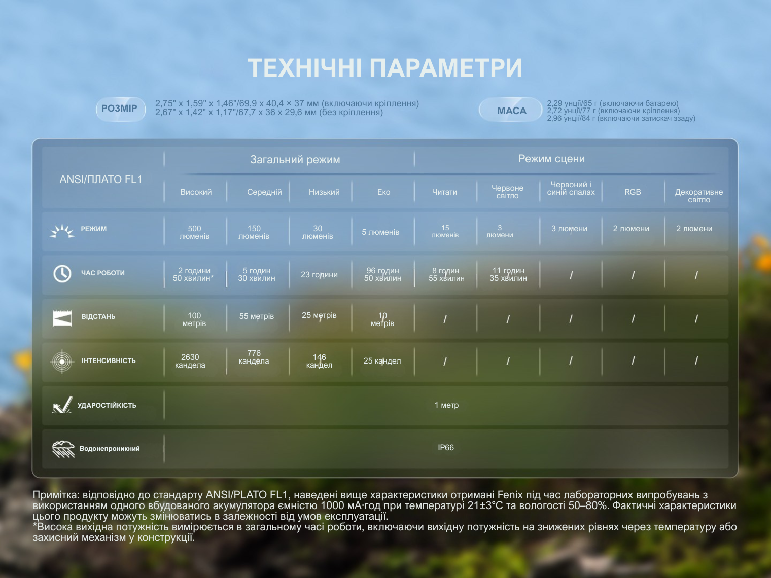 Зверніть увагу! Час роботи у високому режимі вказано з урахуванням тривалості світіння на менш яскравих режимах — ліхтар автоматично знижує потужність променя, якщо спрацьовує захист від перегрівання.