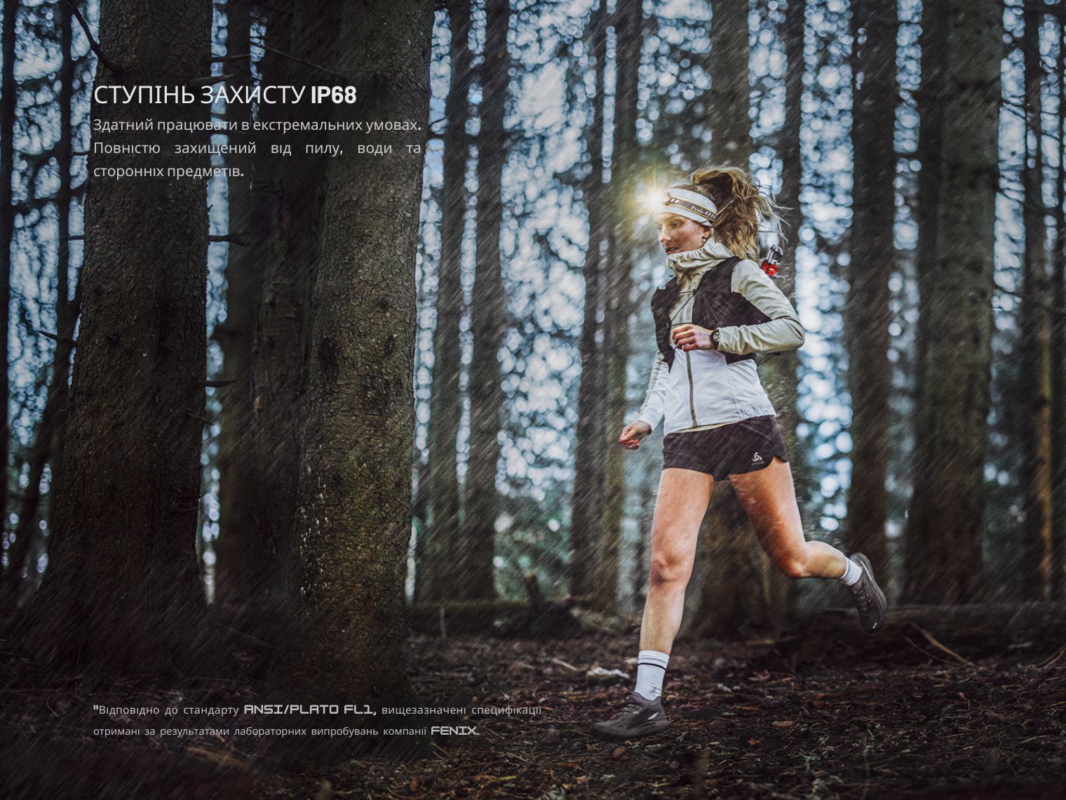 Клас герметичності IP68 — максимальний рівень захисту, що дає можливість використовувати ліхтар у складних погодних умовах.