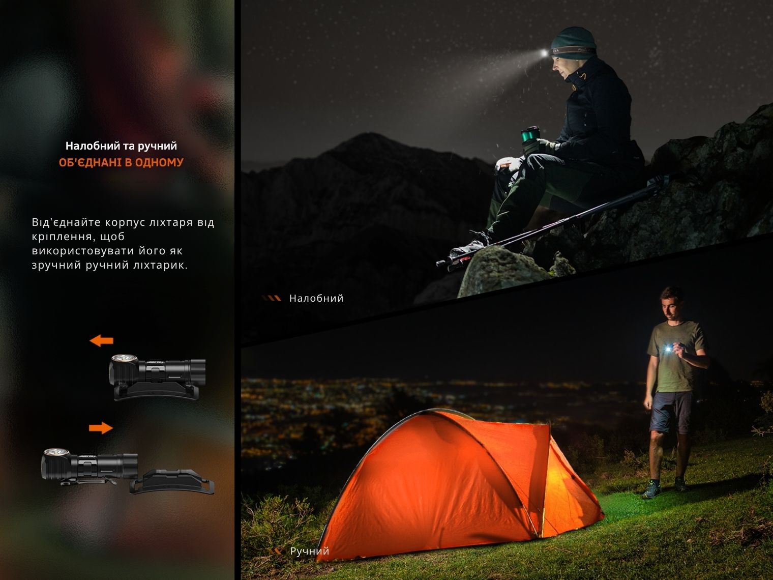 Одна з особливостей моделі — універсальна конструкція. Ви можете носити ліхтар на голові або касці, знімати корпус з кріплення та використовувати його як ручний ліхтарик, кріпити на кишеню або фіксувати на металевій поверхні завдяки магніту у хвості.