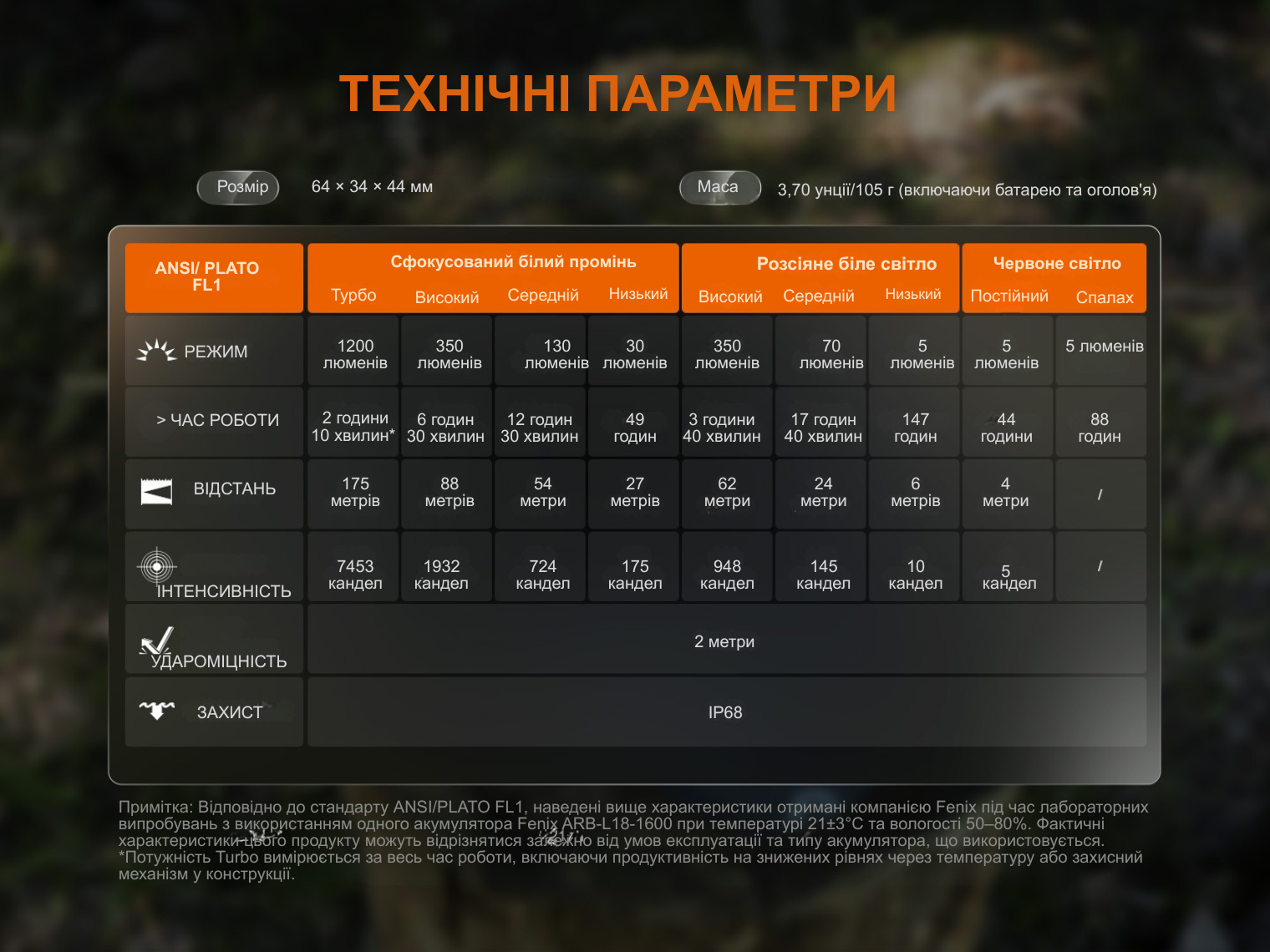 Зверніть увагу! Захист від перегріву знижує яскравість світла в режимі Турбо, якщо температура електроніки всередині сягає небезпечної позначки ~55°C. Час роботи у режимі Турбо вказано з урахуванням спрацьовування захисту.