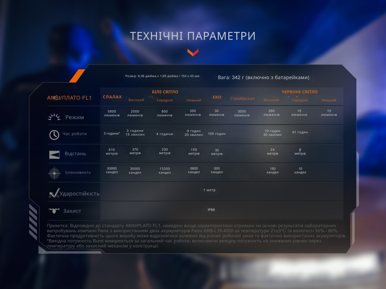 Комплектація | Fenix TK35R, аккумуляторы Fenix ARB-L18-4000 (2 шт), зарядный кабель USB-C, запасное уплотнительное кольцо, темляк, чехол на пояс, руководство пользователя |