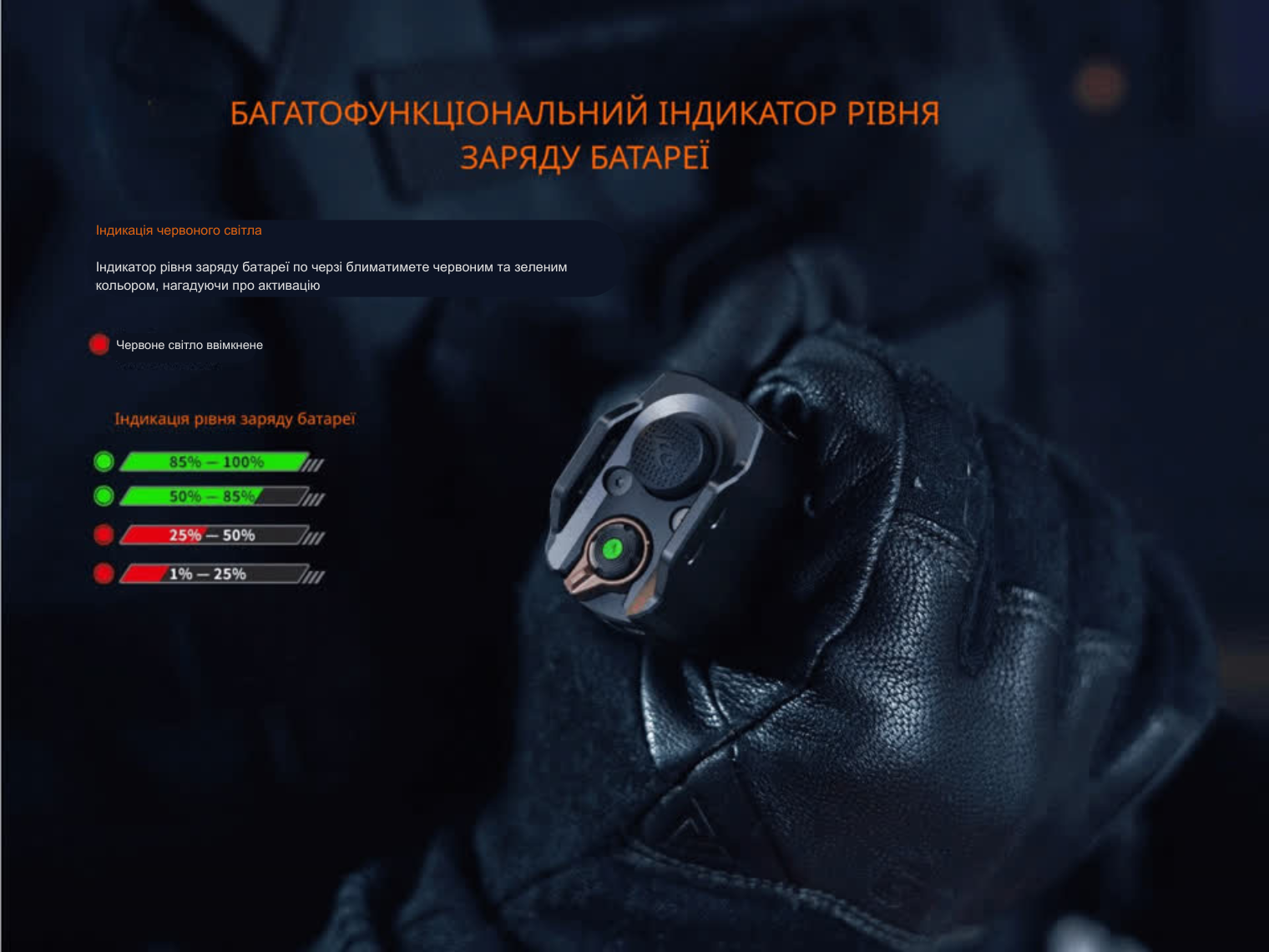 Зверніть увагу! Час світіння в режимі «Спалах» наведено з урахуванням тривалості роботи на режимах з меншою яскравістю. Система перемикається на них автоматично, якщо активується вбудований захист від перегрівання.