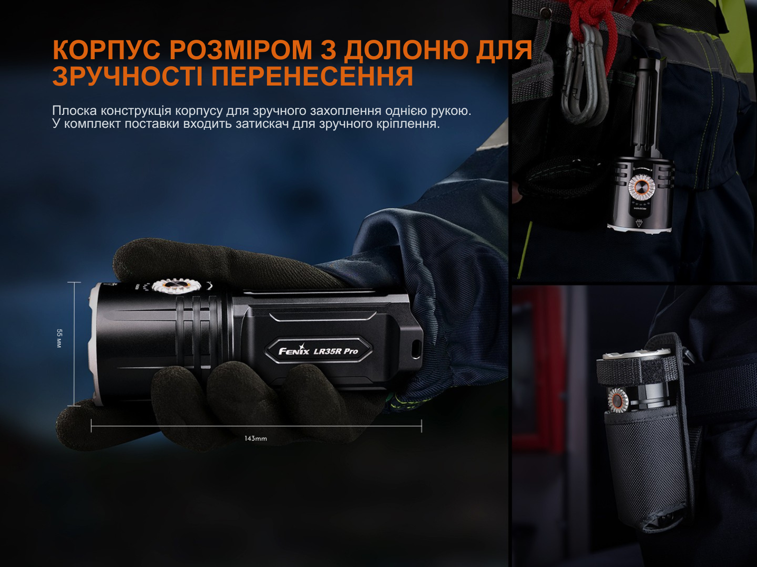 Fenix LR35R PRO — ручний ліхтар з інноваційним функціоналом, націленим на універсальність у використанні та зручне керування.
