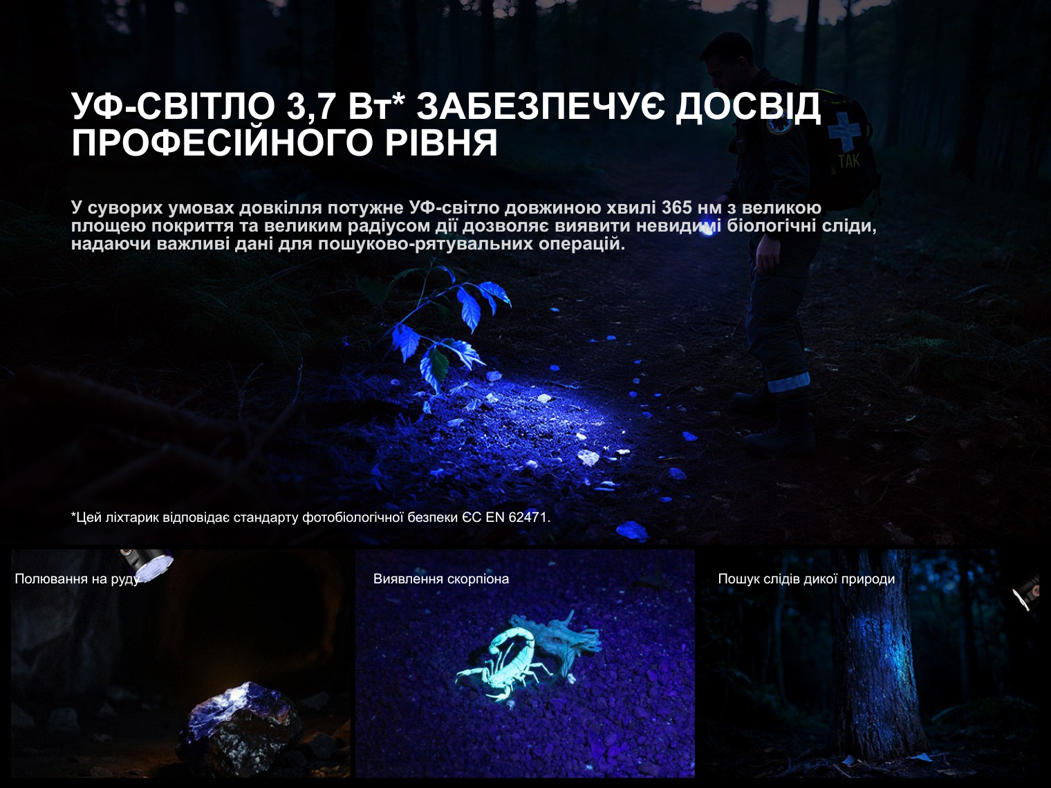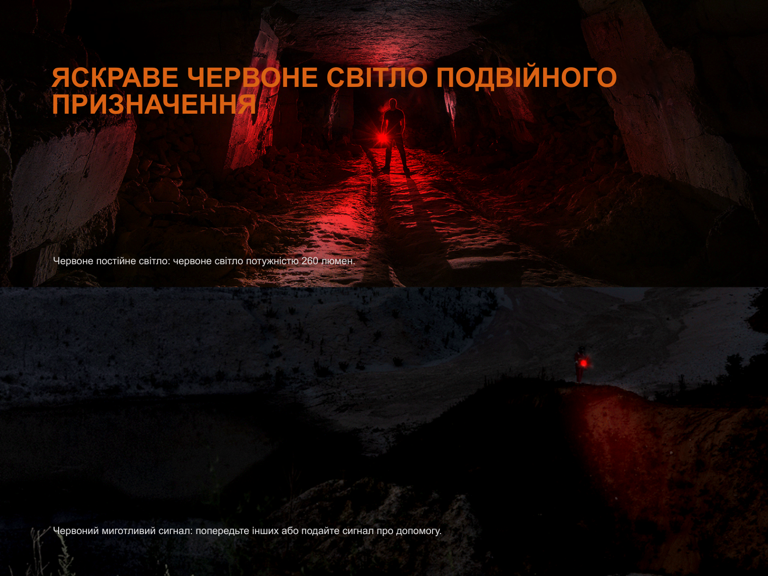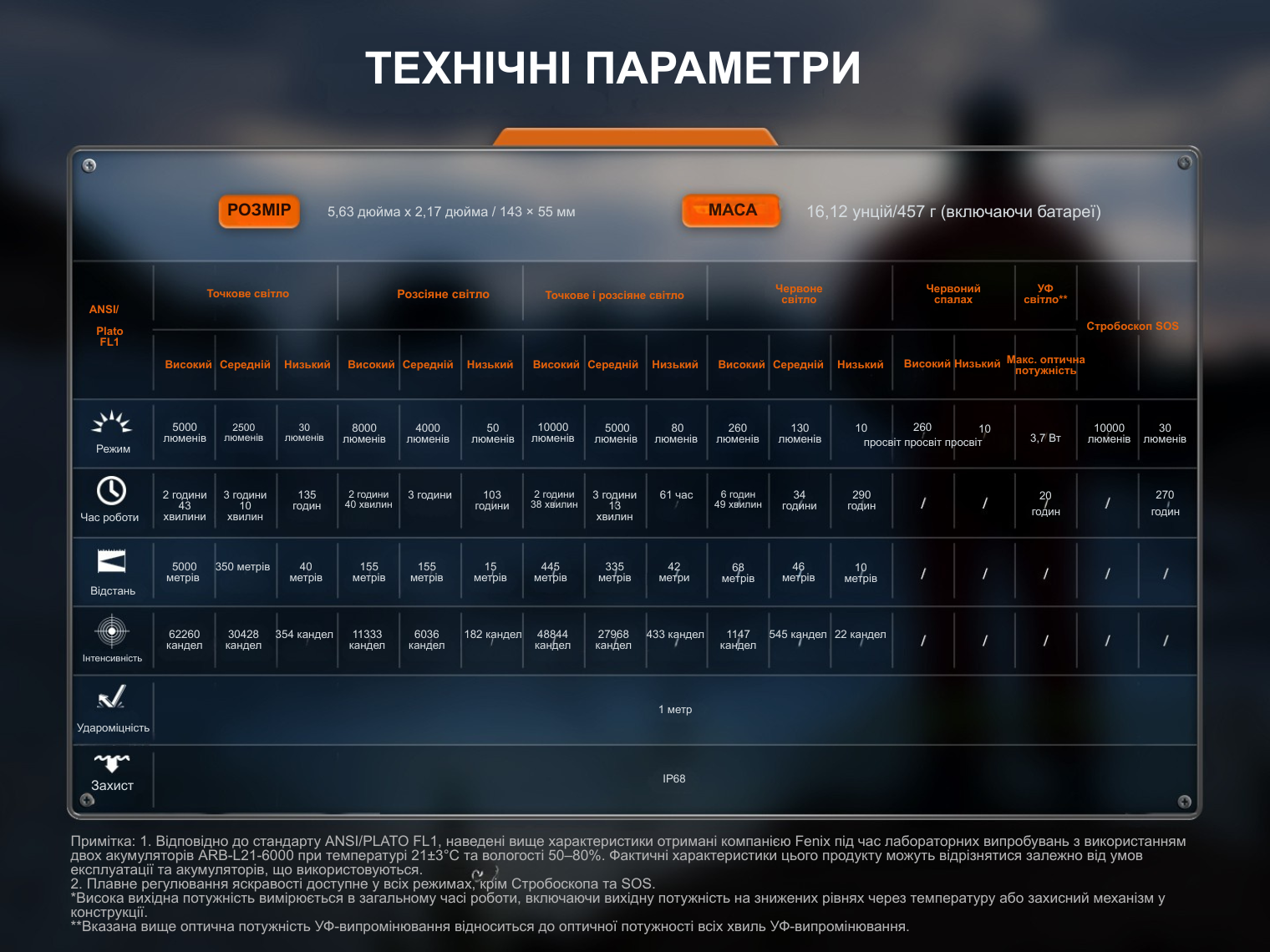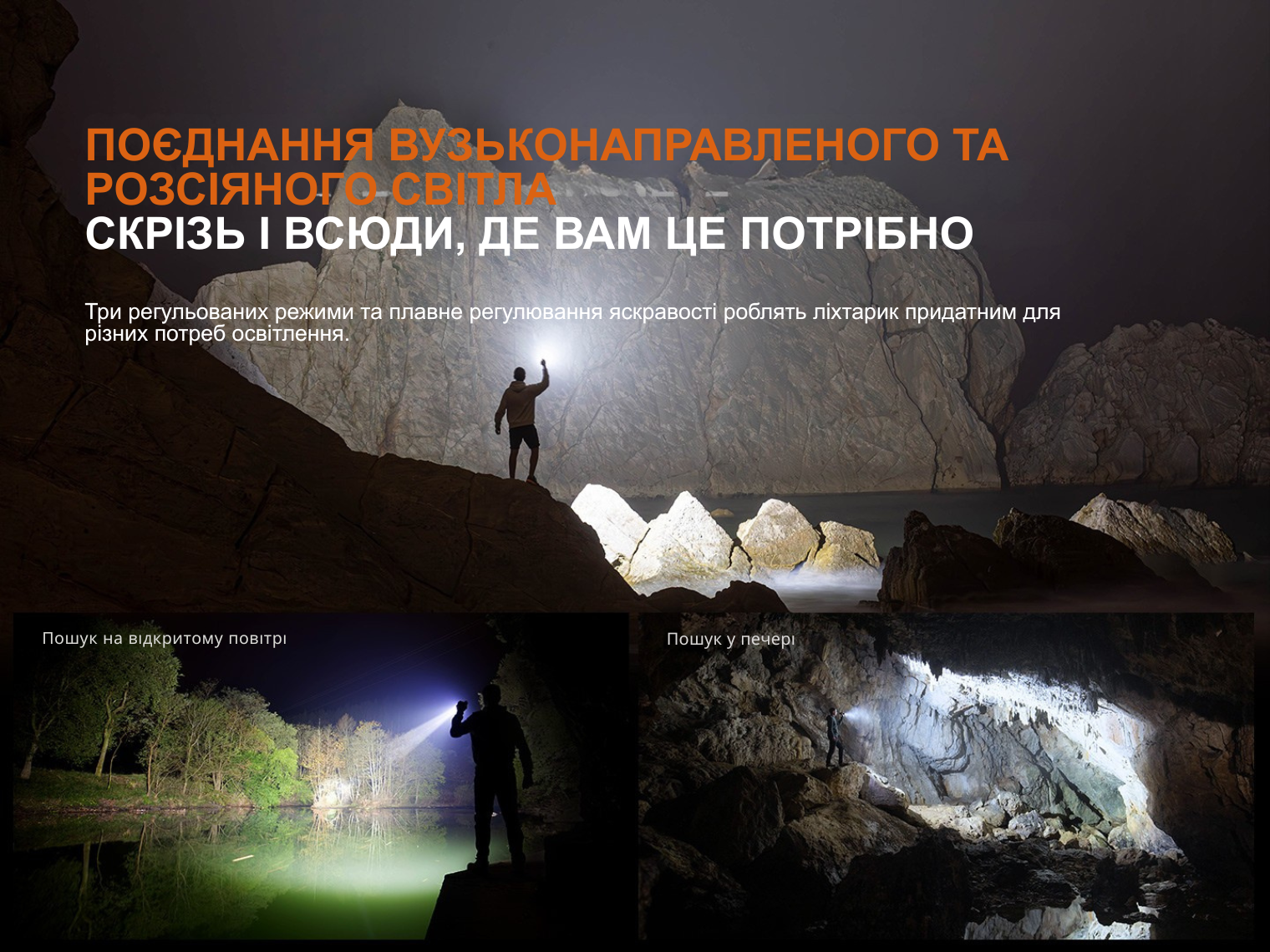 Зверніть увагу! Час роботи у режимі Високий вказано з урахуванням автоматичного переходу на менш яскраві режими після спрацювання захисту від перегрівання.