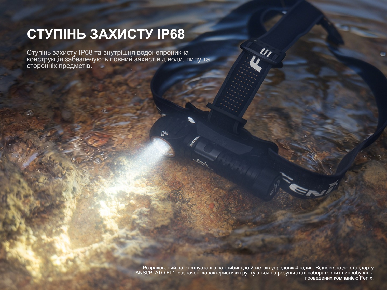 Ступінь герметичності IP68 гарантує повну пилонепроникність та працездатність при зануренні у воду на глибину до 2 м протягом 30 хв.