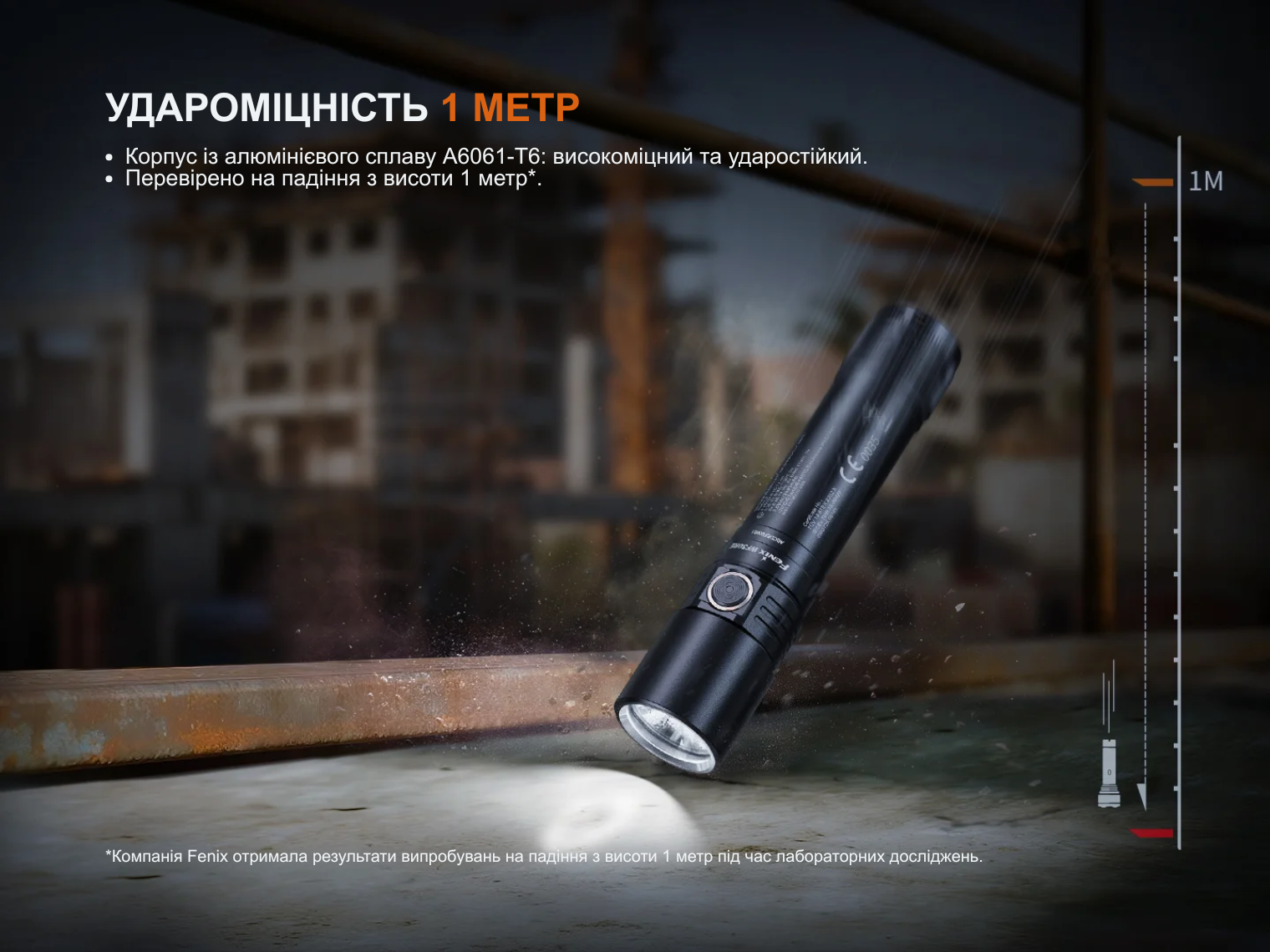 Ліхтар можна використовувати як налобний, закріпивши його на касці чи шоломі за допомогою кріплення Fenix ALD-05 (купується окремо).