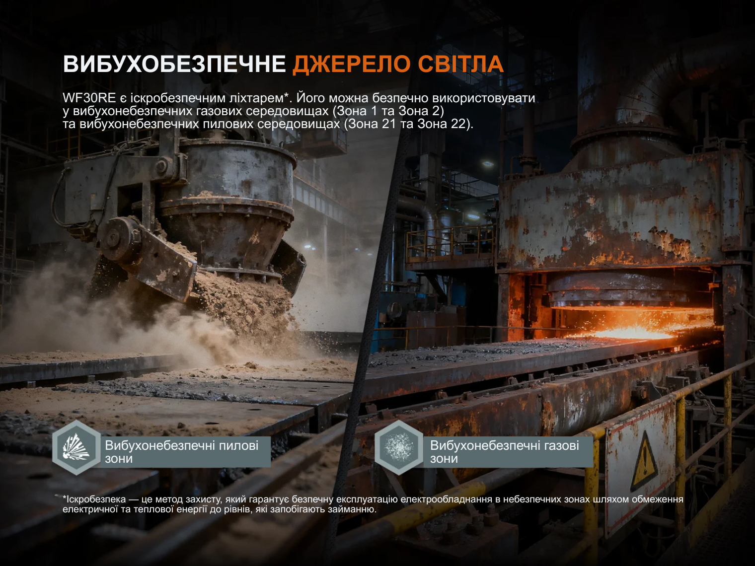 Це покращена версія спеціалізованого вибухозахищеного ліхтаря, розробленого для професіоналів, які працюють у зонах із високим ризиком вибуху (крім підземних шахт). Модель є ідеальним інструментом для нафтової, хімічної, текстильної промисловості, пожежних частин, металургійних цехів та електростанцій.