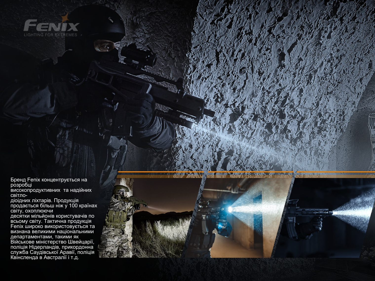 Комплектація | ліхтар Fenix TK06, акумулятор 18650 літій-іонний, кабель для зарядного пристрою micro-USB, ремінь на руку, чохол, запасне кільце ущільнювача, додаткова гумова накладка на кнопку, гарантійний талон, керівництво до застосування. |