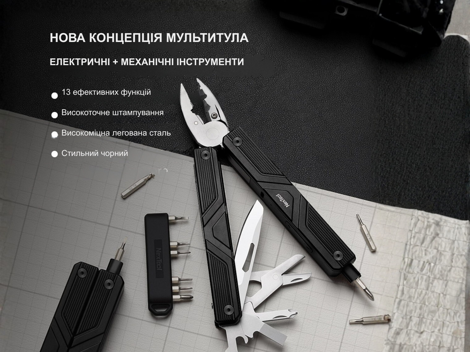 NexTool Gemini — це переосмислення ідеї, яким може бути кишеньковий мультитул. В одному корпусі об'єднані повнорозмірні плоскогубці, набір дрібних допоміжних інструментів, а також вбудована електрична викрутка.