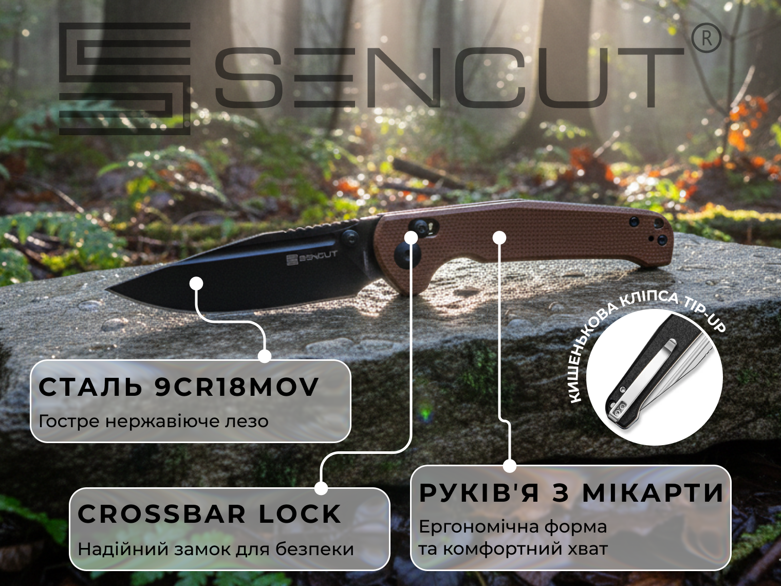 Ніж важить усього 95,1 г, тому він майже невідчутний у кишені. Надійна сталева кліпса дозволяє зручно закріпити його на поясі або спорядженні. Для максимальної зручності кліпсу можна переставити під ліву або праву руку.