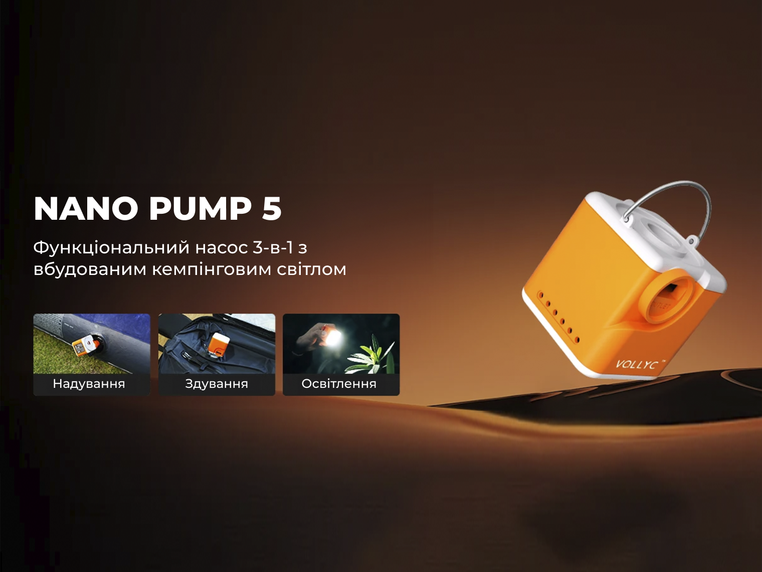 Vollyc Ezy Pump миттєво готує спорядження до використання. Акумуляторний насос качає повітря зі швидкістю 200 л/хв, тому він легко справляється з великими матрацами, подушками чи водними іграшками замість важких ручних помп.
