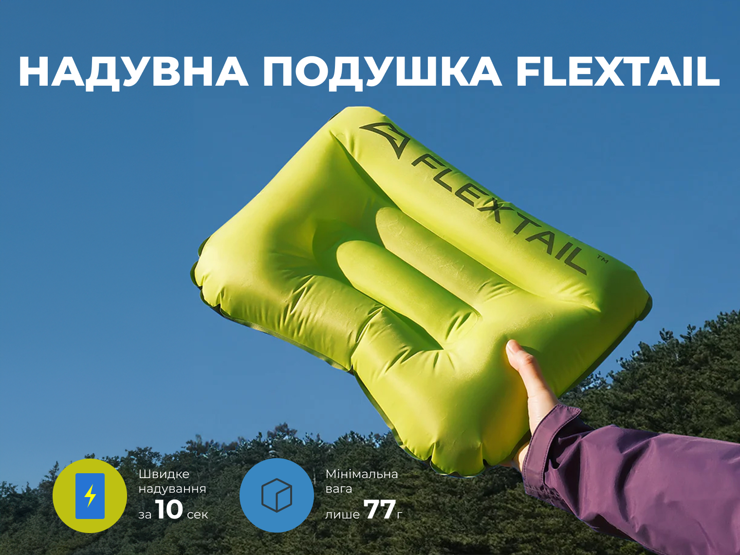 Надувна подушка Flextail Tiny Pillow AVS, компактний мішок для зберігання, інструкція.