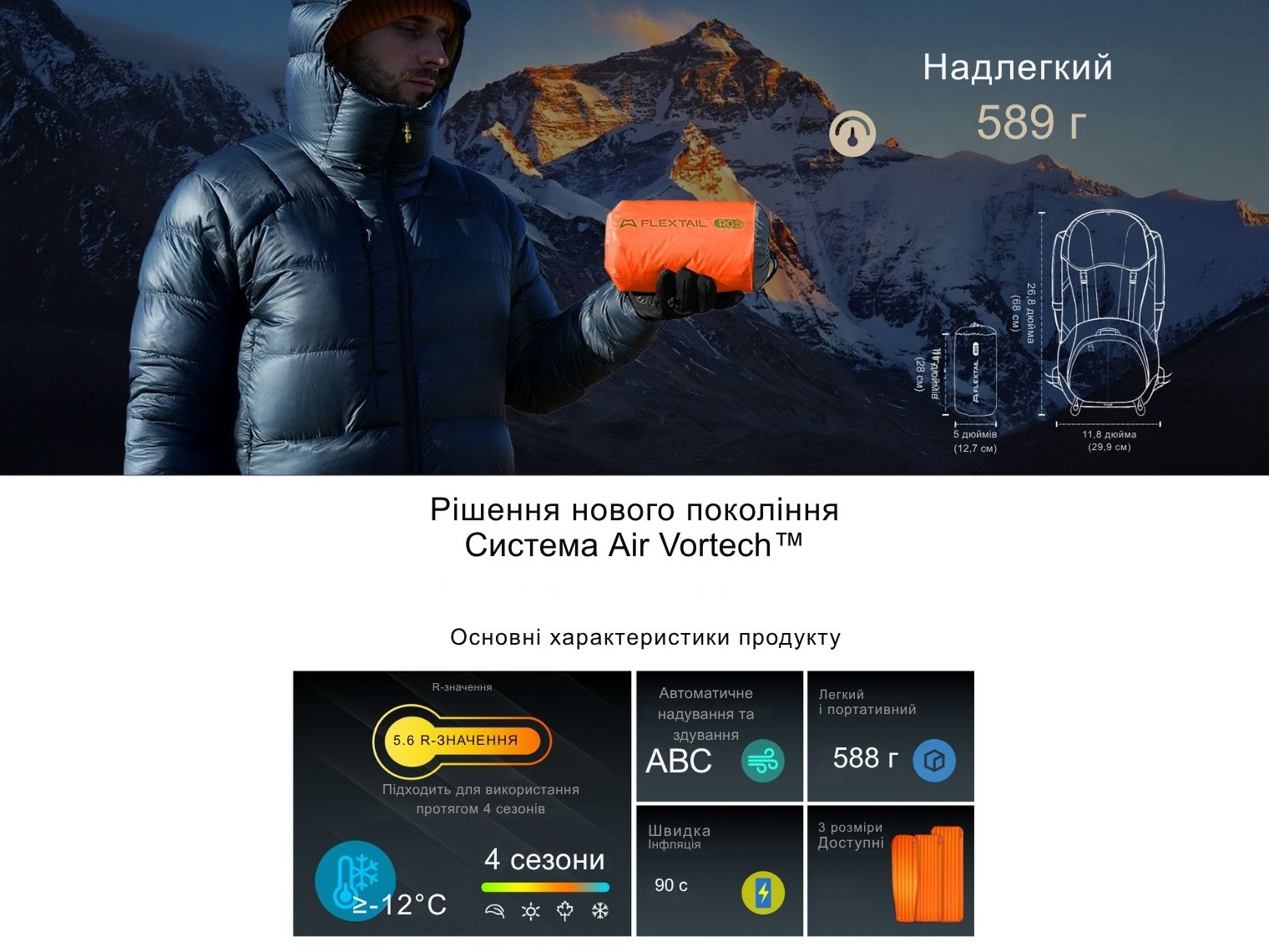 Особливості килимка Flextail Tiny Slleeping Pad R05 AVS: