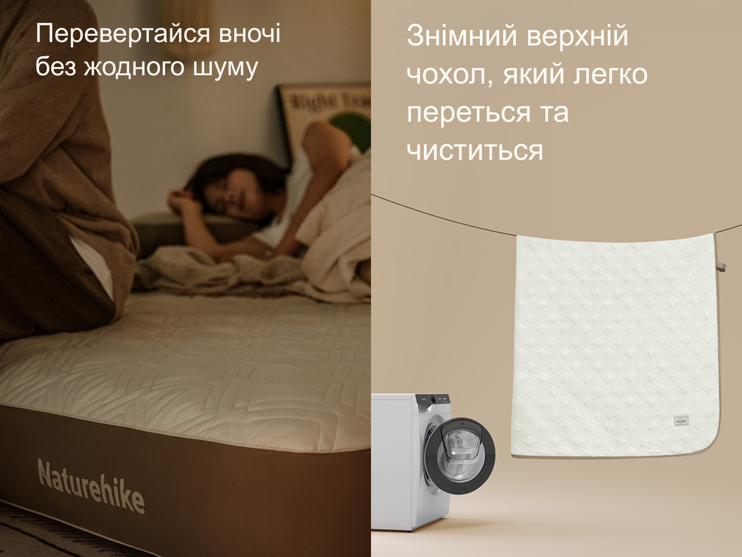 Матрац Naturehike CNK2450WS023 надувається до розмірів 200 х 150 см, надаючи просторе місце для відпочинку кількох людей у будь-якій комфортній позі. Модель витримує навантаження до 400 кг.