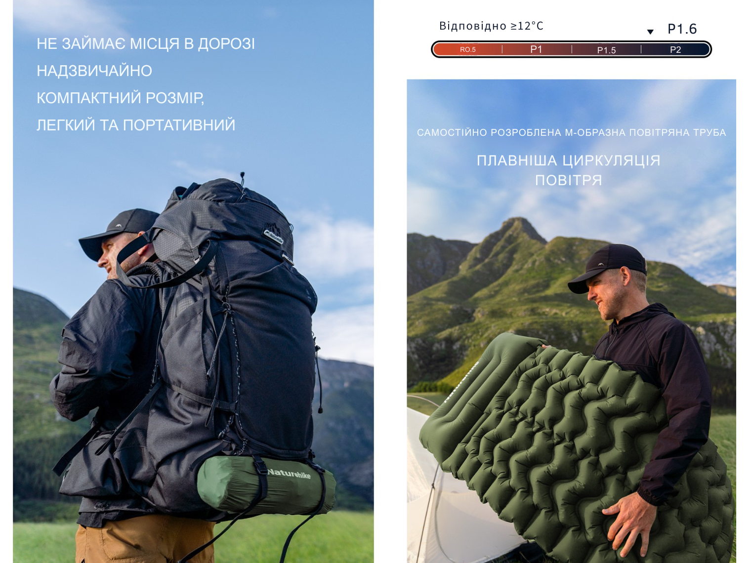 Двомісний матрац Naturehike CNK2550WS019 — це гарант якісного відпочинку та здорового сну просто неба. Рівень теплоізоляції моделі (рейтинг R-Value) становить R1.6, що є ідеальним показником для використання за температури від 12°C і вище.
